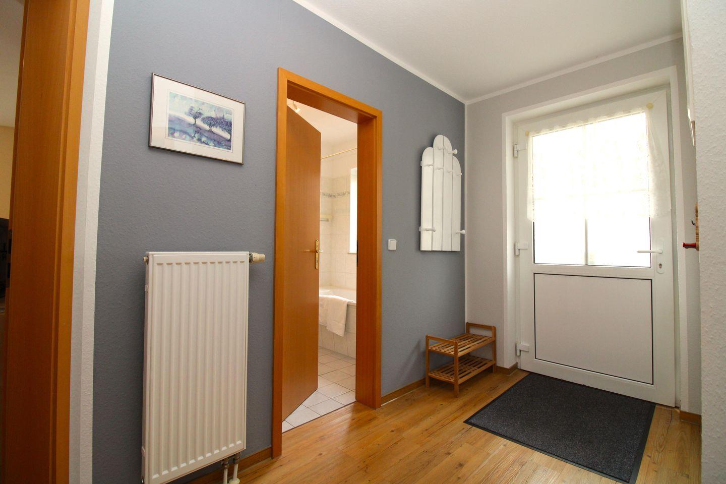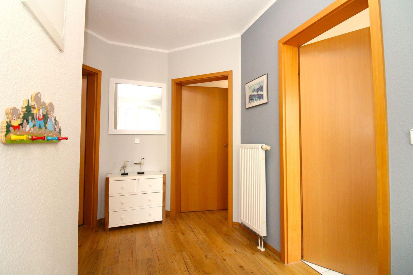 Vom geräumigen Flur mit Garderobe, Spiegel und kleiner Kommode erreichen Sie bequem alle Räume Ihrer Ferienwohnung.