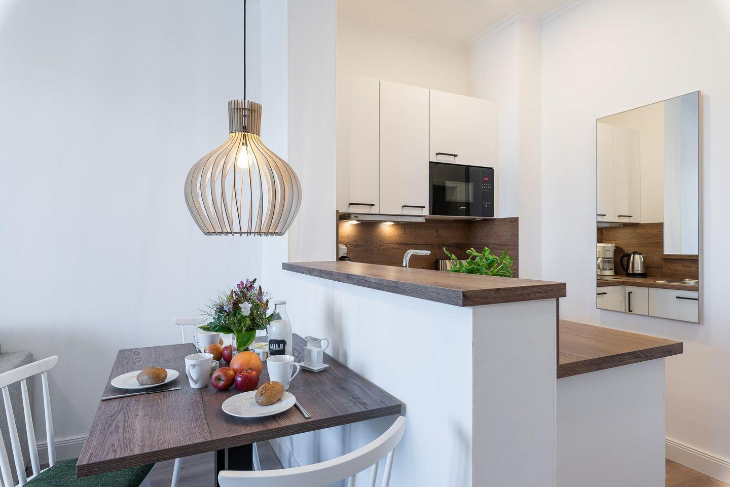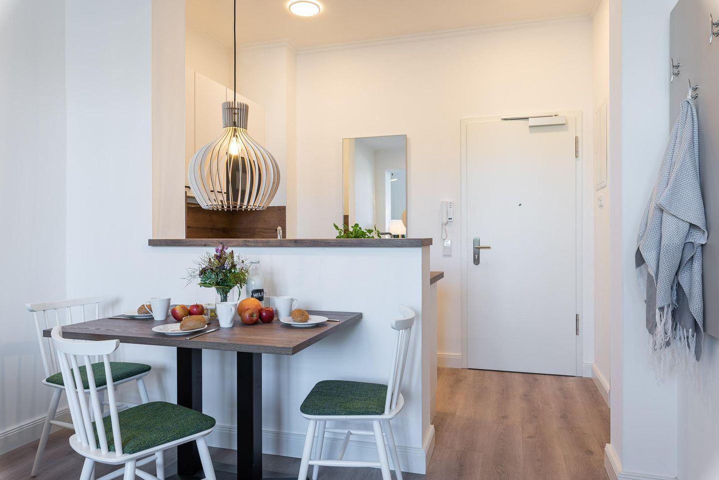 Das Westside Arthotel Apartment 102 bietet auf ca. 52 m² modernen Komfort für bis zu vier Personen. Freuen Sie sich auf eine Terrasse mit Gartenmöbeln, eine voll ausgestattete, offene Küche, ein Schlafzimmer, Aufzug, einen Privatparkplatz und eine Ladestation für Elektroautos. Haustiere sind willkommen (10€/Nacht pro Haustier, sowie einmalig eine Haustierendreinigung in Höhe von 25€). Die zentrale Lage in Kühlungsborn ermöglicht kurze Wege zum Strand, zu Restaurants und Einkaufsmöglichkeiten.
