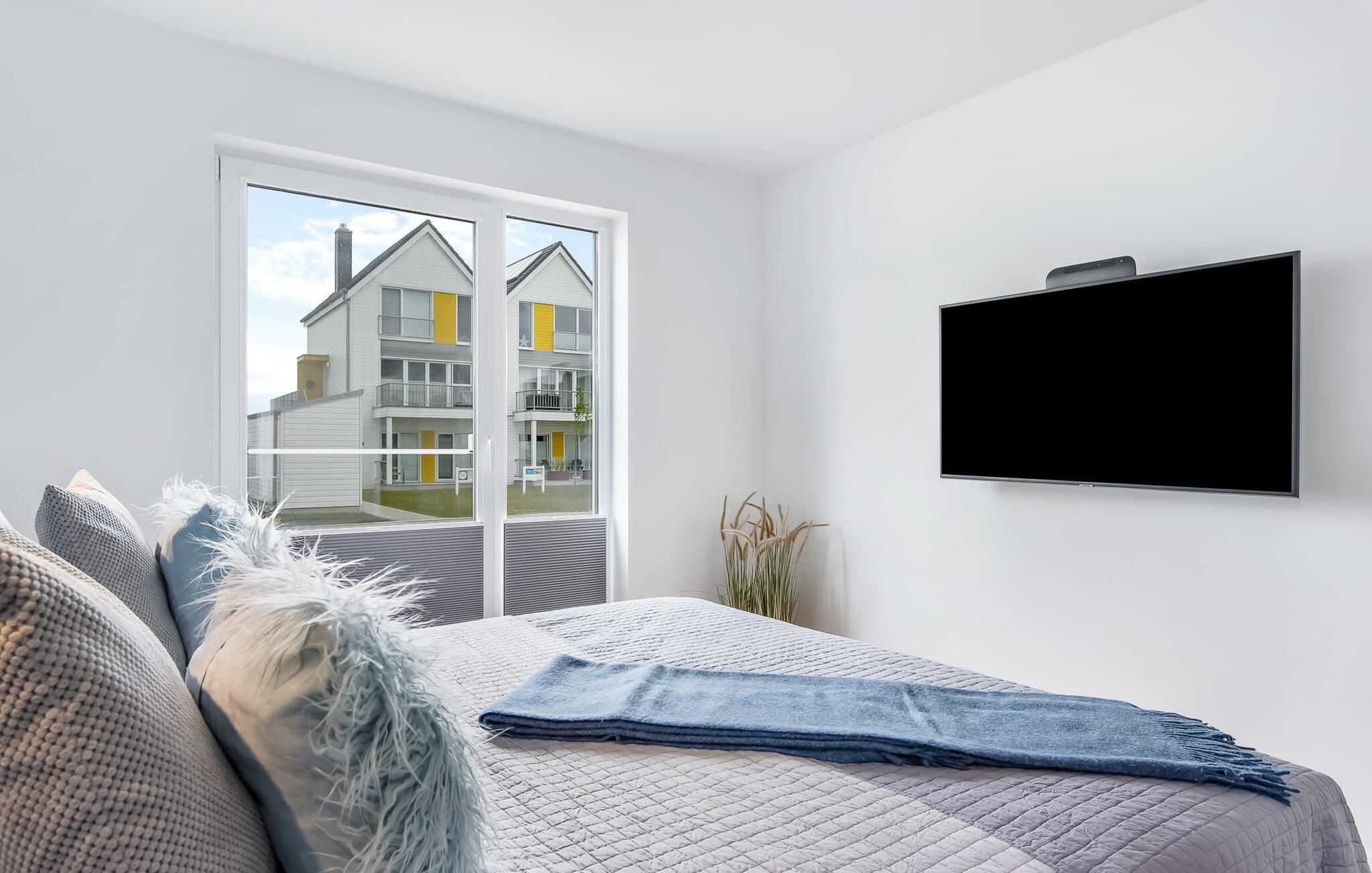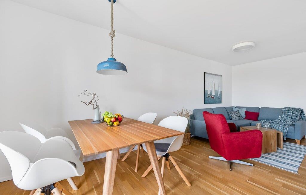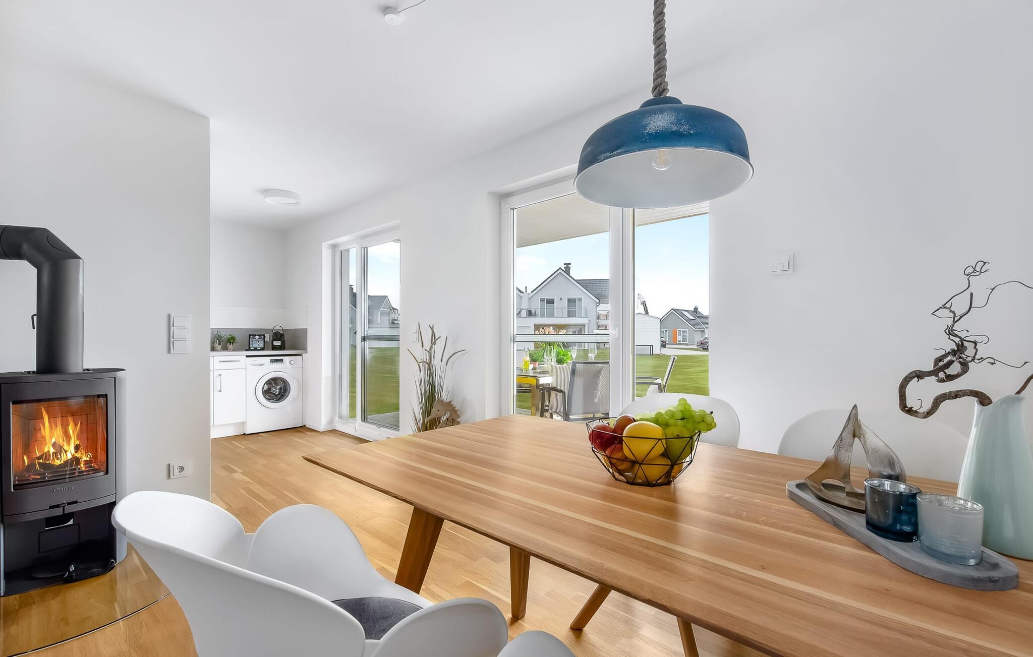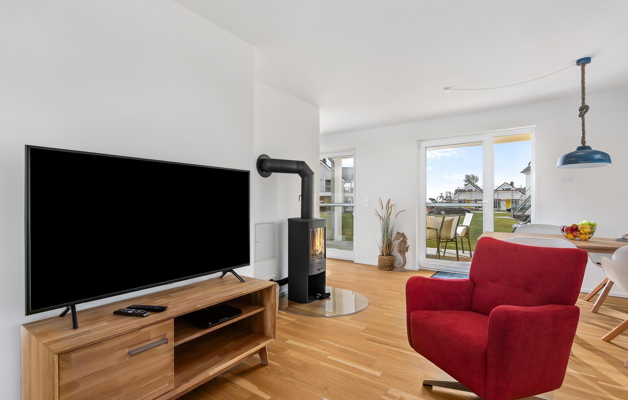 At tilbringe et par afslappende uger med familien er en realitet i denne ferielejlighed. Selvom I ikke er et født kystbarn, vil I alle føle jer hjemme her, da denne ferielejlighed byder på noget for enhver smag. KÜSTENKIND ligger mellem flodens udmunding og Østersøen og er derfor omgivet af vandelementet. Og hvor Østersøen er, er der også en strand, Weidefelder Strand. Blot få minutters gang fra jeres sommerhus kan de små grave af hjertens lyst, plaske i vandet og udleve deres trang til at bevæge sig. Og hvis børnene er glade, er det afslappet for forældrene. Der er også sørget for jeres fysiske velbefindende: Der er en kiosk, et veludstyret supermarked og en strandrestaurant på pæle med udsigt over Østersøen. KÜSTENKIND er en rummelig ferielejlighed i stueetagen, som I kan komme direkte ind i via to terrasser. Sommerlivet kunne ikke være mere afslappet. Indrettet i nordisk-maritim stil emmer hvert værelse af hygge. Den åbne stue/alrum med tilstødende køkken imponerer med sine gulv-til-loft vindueselementer og udsigten i det fjerne. Fra både køkkenet og stuen har I adgang til den anden terrasse, hvor I kan nyde spisning og afslapning. Der er to soveværelser: det ene med en komfortabel dobbeltseng og et fjernsyn, det andet har to enkeltsenge. Begge værelser har udsigt over havet og havnen. En anden oase af velvære er badeværelset med infrarød sauna og boblebad, som også har brusefaciliteter. Og da lejligheden byder på gulvvarme og en elegant pejs, er det en skøn ferie selvom vejret ikke hjælper. Der er desuden parkeringsplads direkte ved huset samt aflåseligt cykelskur. Vores favoritsted: Cykle langs sports- og sejlhavnen til havnepromenaden og slentre lidt der. Grillen er en gasgrill. Gaspatroner er ikke inkluderet i prisen. Bemærk venligst: OstseeResort Olpenitz er meget populært, og der bygges fortsat i parken. Ikke desto mindre kan I se frem til en 5-stjernet standard og et førsteklasses ophold. Byggeaktiviteterne kommer ikke til at forstyrre jer på ferien, og derfor gives der ikke yderligere afslag i prisen.