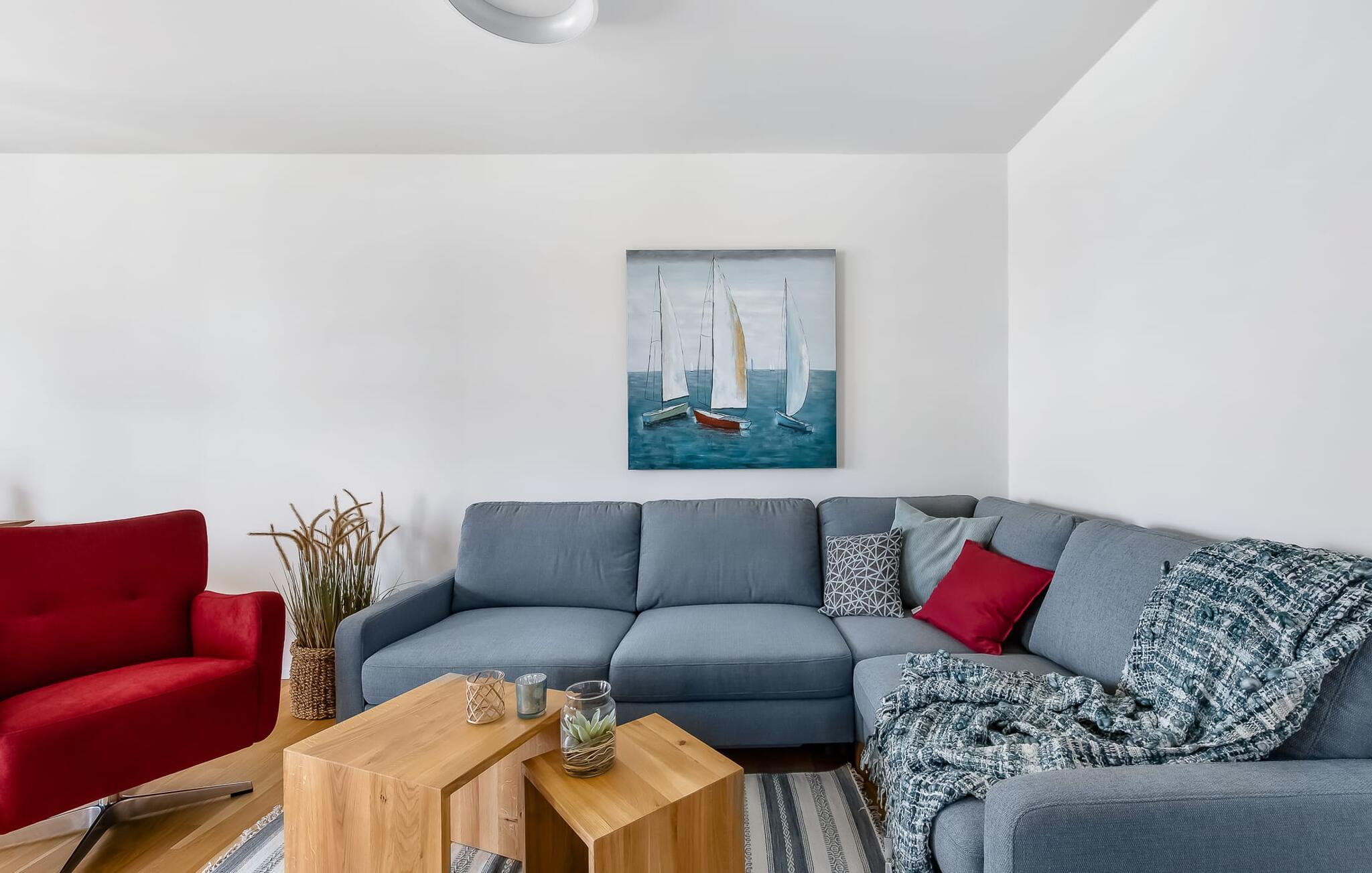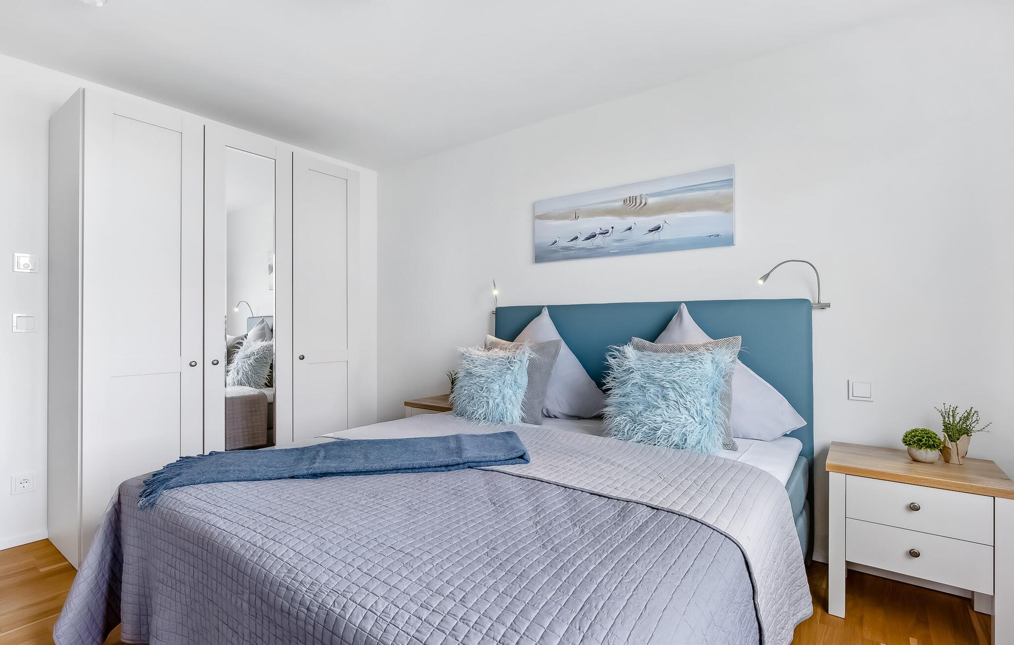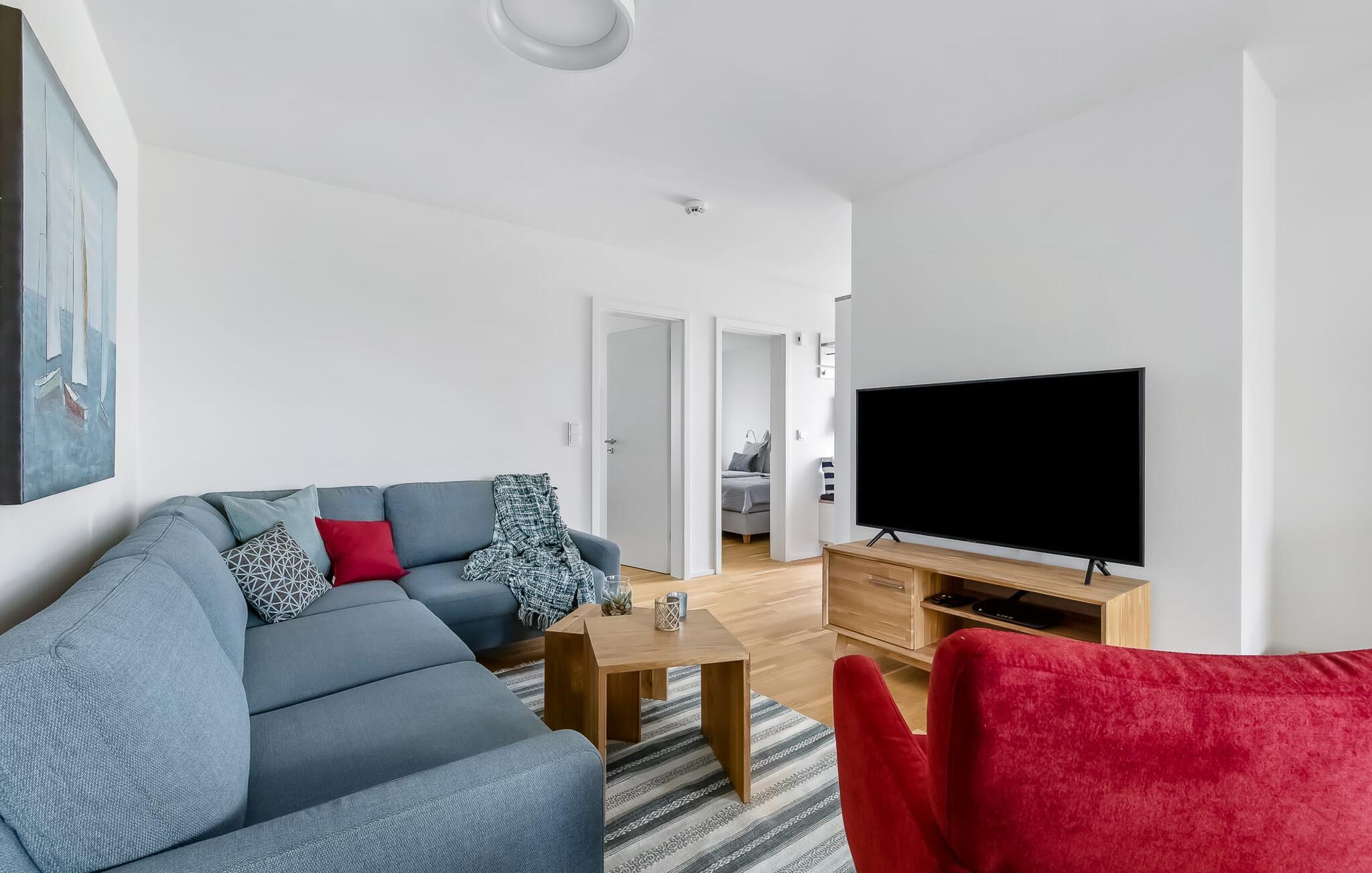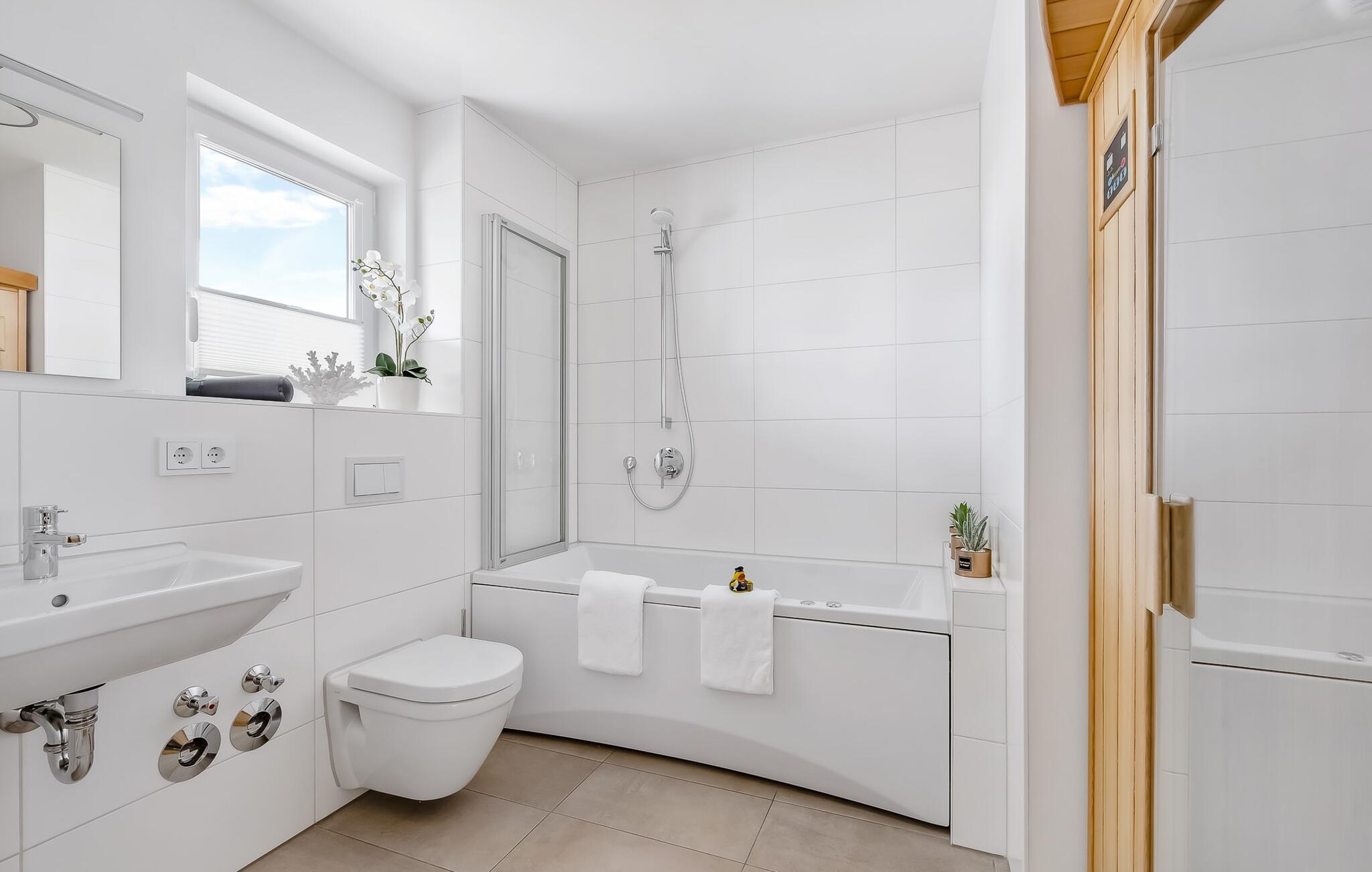 At tilbringe et par afslappende uger med familien er en realitet i denne ferielejlighed. Selvom I ikke er et født kystbarn, vil I alle føle jer hjemme her, da denne ferielejlighed byder på noget for enhver smag. KÜSTENKIND ligger mellem flodens udmunding og Østersøen og er derfor omgivet af vandelementet. Og hvor Østersøen er, er der også en strand, Weidefelder Strand. Blot få minutters gang fra jeres sommerhus kan de små grave af hjertens lyst, plaske i vandet og udleve deres trang til at bevæge sig. Og hvis børnene er glade, er det afslappet for forældrene. Der er også sørget for jeres fysiske velbefindende: Der er en kiosk, et veludstyret supermarked og en strandrestaurant på pæle med udsigt over Østersøen. KÜSTENKIND er en rummelig ferielejlighed i stueetagen, som I kan komme direkte ind i via to terrasser. Sommerlivet kunne ikke være mere afslappet. Indrettet i nordisk-maritim stil emmer hvert værelse af hygge. Den åbne stue/alrum med tilstødende køkken imponerer med sine gulv-til-loft vindueselementer og udsigten i det fjerne. Fra både køkkenet og stuen har I adgang til den anden terrasse, hvor I kan nyde spisning og afslapning. Der er to soveværelser: det ene med en komfortabel dobbeltseng og et fjernsyn, det andet har to enkeltsenge. Begge værelser har udsigt over havet og havnen. En anden oase af velvære er badeværelset med infrarød sauna og boblebad, som også har brusefaciliteter. Og da lejligheden byder på gulvvarme og en elegant pejs, er det en skøn ferie selvom vejret ikke hjælper. Der er desuden parkeringsplads direkte ved huset samt aflåseligt cykelskur. Vores favoritsted: Cykle langs sports- og sejlhavnen til havnepromenaden og slentre lidt der. Grillen er en gasgrill. Gaspatroner er ikke inkluderet i prisen. Bemærk venligst: OstseeResort Olpenitz er meget populært, og der bygges fortsat i parken. Ikke desto mindre kan I se frem til en 5-stjernet standard og et førsteklasses ophold. Byggeaktiviteterne kommer ikke til at forstyrre jer på ferien, og derfor gives der ikke yderligere afslag i prisen.