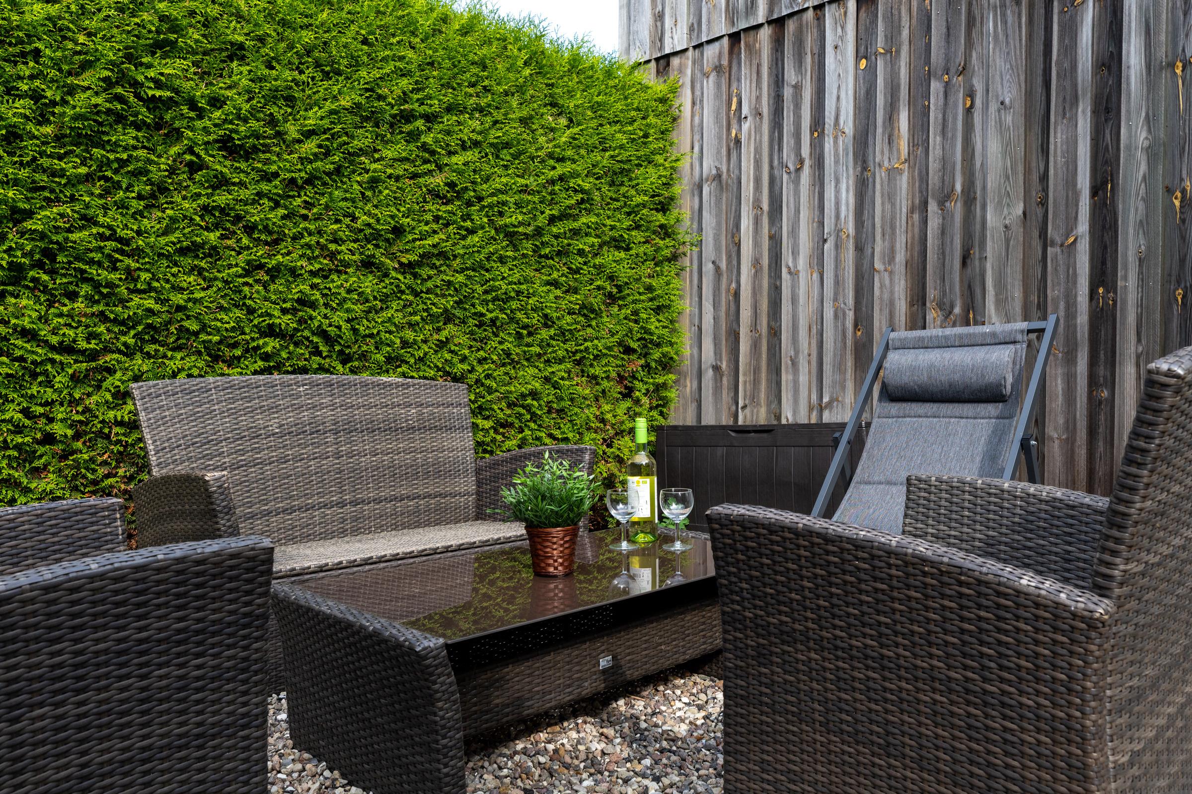 Es erwartet Sie der heimelige Wohn-/Essbereich mit Kaminofen, der auch an kühlen Tagen eine warme und gemütliche Atmosphäre entstehen lässt. Bereiten Sie Ihr Frühstück, Mittag- oder Abendessen in der gute ausgestatteten Küche zu und genießen Ihre Mahlzeiten bei schönem Wetter auf der sonnigen Terrasse.