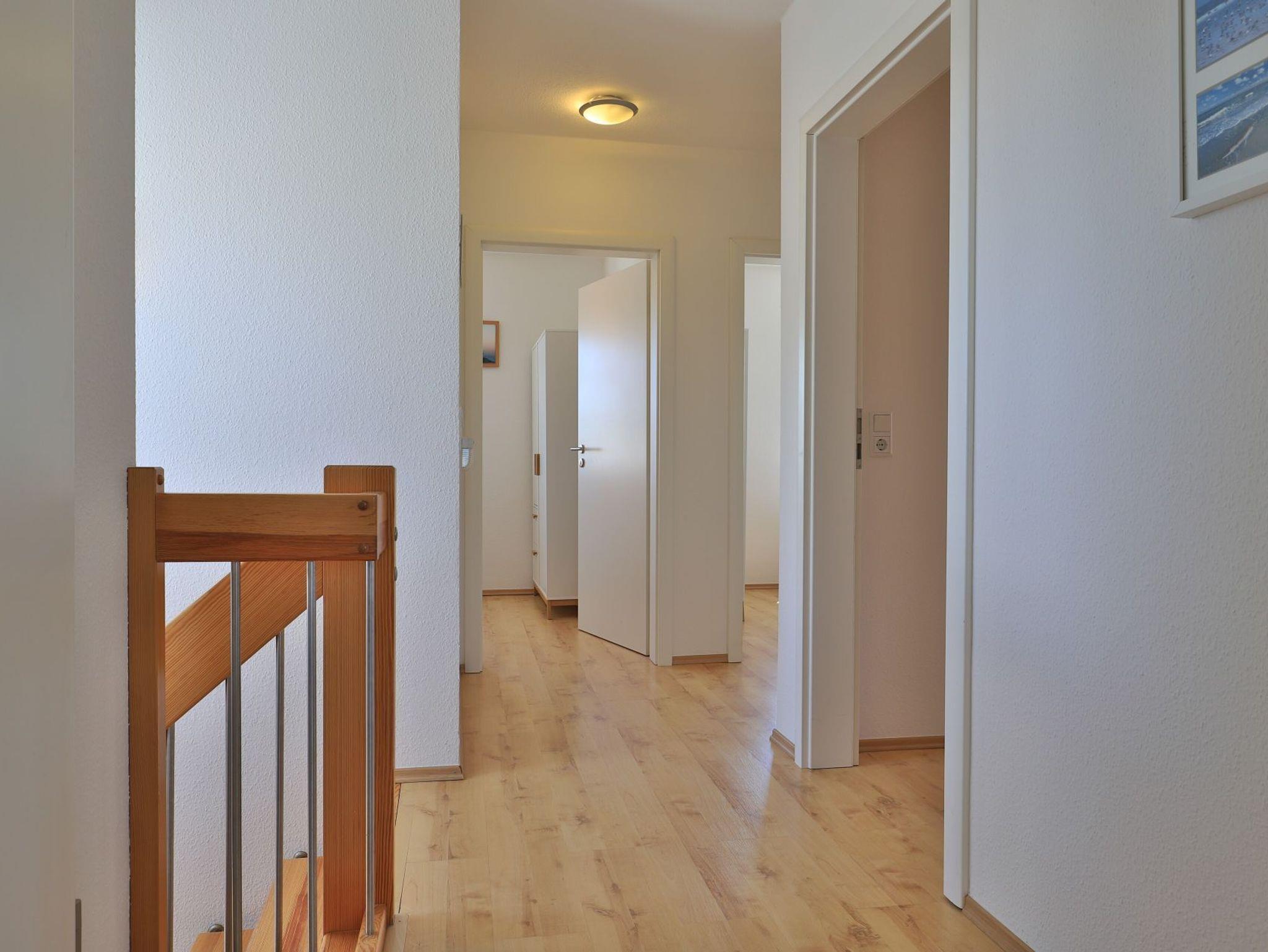 Sehr komfortabel empfängt Sie das Einzel-Ferienhaus Wellenreiter mit einer geräumigen Wohnfläche von 140 m². Die gut durchdachte Raumaufteilung bietet für bis zu 8 Personen großzügiges Wohnen. In hellen Farben präsentiert sich der gemütliche Wohn-/Essbereich mit Kaminofen, TV- DVD, Wlan Zugang und offener, komplett ausgestatteter Komfort Einbauküche. Vom Wohnbereich gelangen Sie über die Süd-West Terrasse in den großen Garten, wo Ihre Kinder ausgelassen spielen können. Ebenso befindet sich im Erdgeschoss ein Hauswirtschaftsraum mit Waschmaschine sowie ein Duschbad und ein Schlafzimmer mit Doppelbett. Im Obergeschoss sorgen drei weitere Schlafzimmer für entspannte Nächte. Zudem ist ein Vollbad mit Saunabereich ? gegen Gebühr- für 6 Personen vorhanden (? 0,70 pro Kwh). Für kleine Kinder stehen Kinderhochstuhl und Kinderreisebett bereit. Zwei kostenfreie PKW-Stellplätze befinden sich auf dem Grundstück. In dem Nichtraucher- Ferienhaus sind Haustiere nicht gestattet. Bitte beachten Sie, dass bei Anreise eine Kaution i.H.v. 250,00Euro erhoben wird.