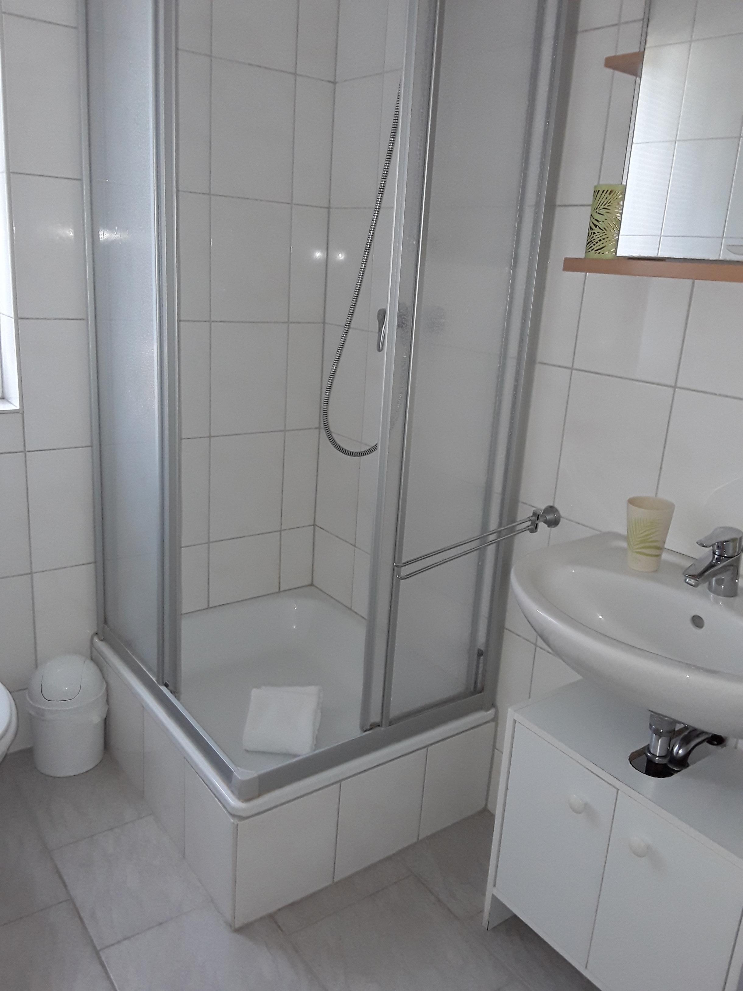 Unser Apartment hat ein schönes Bad mit Dusche, eine komplett ausgestattete Küche. Im Wohnzimmer steht eine Schlafcouch für 2 Personen. Dieses Apartment verfügt über eine eigene Terrasse. Terrassenmöbel und Sonnenschirme stehen incl. zur Verfügung. In den Schlafzimmern finden Sie ein kuschliges Doppel- und Einzelbett. Für die Strandausflüge haben wir auch einen Bollerwagen für Sie. Und für die etwas kühleren Tage verfügt unser Apartment über eine individuell regelbare Heizung. Für die kleinen Gäste stehen ein Kinderhochstuhl und Spielsachen bereit. Für Ihr Auto steht ein Stellplatz auf dem Grundstück zur Verfügung.