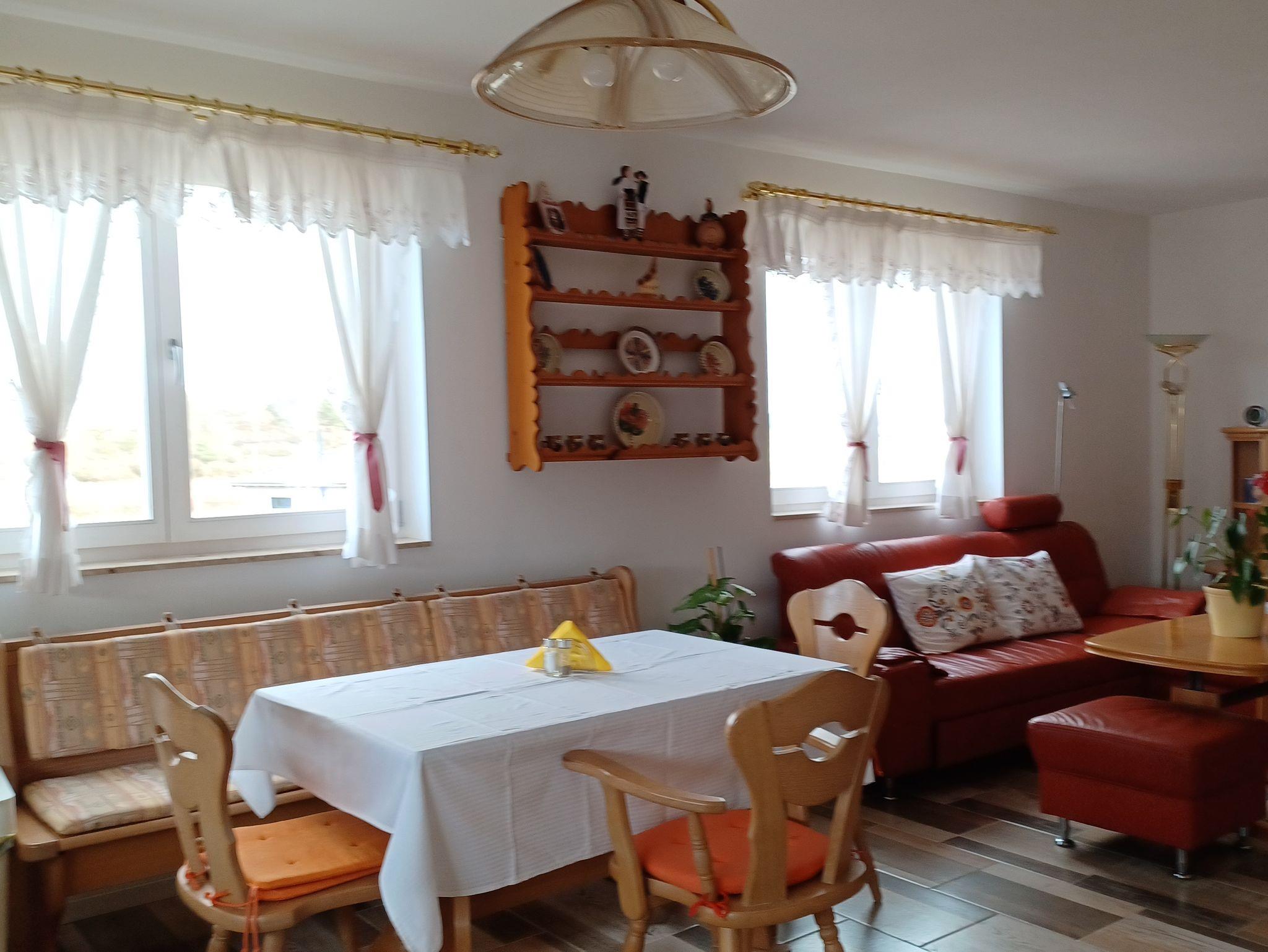 Idyllische Lage im Naabtal - der Ortskern von Kallmünz ist fußläufig gut erreichbar. Unsere neue, gemütliche Ferienwohnung verfügt über 3 komfortable Doppelzimmer. Im großzügigen Wohn- und Essbereich können unsere Gäste gemeinsam schöne Stunden verbringen und ihre persönliche Auszeit genießen.