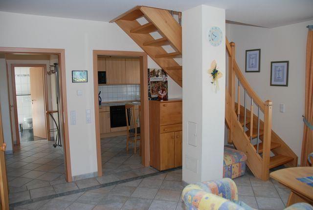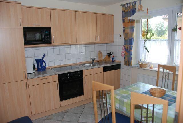 Im Erdgeschoss des Hauses verfügen Sie über ein Wohnzimmer, dass mit einer Sofaecke, TV-Gerät, WLAN, Radio und Zugang zur Terrasse ausgestattet ist. Die angrenzende, separate Küche ist vollausgestattet und bietet Ihnen unter anderem einen Geschirrspüler, einen Kühlschrank mit Gefrierfach, eine Mikrowelle, einen Herd mit Backofen und Kaffeemaschine. Am vorhandenen Esstisch können Sie bei einem guten Frühstück entspannt in den Tag starten.