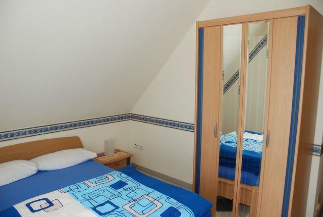Über eine offene Treppe gelangen Sie in die obere Etage des Hauses. Hier befinden sich die zwei separaten Schlafzimmer, die beide mit einem Doppelbett und Kleiderschrank möbliert sind. Eins der Zimmer bietet außerdem ein zusätzliches Einzelbett.
