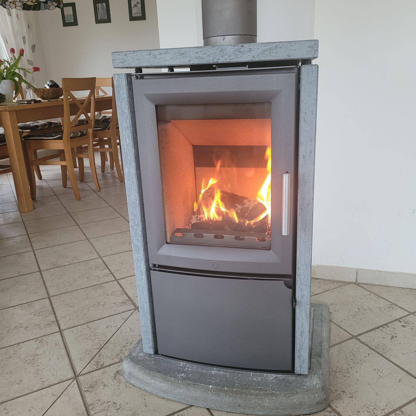 Das kombinierte Wohn- und Esszimmer verfügt über eine große Fensterfront, eine komfortable Sofaecke mit TV-Bereich, Kamin, WLAN, eine Schlafcouch für bis zu 2 Personen und einen Esstisch.