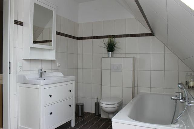 Außerdem steht Ihnen hier ein weiteres großzügiges Badezimmer mit Fenster, Dusche, Badewanne, Waschtisch und WC zur Verfügung.