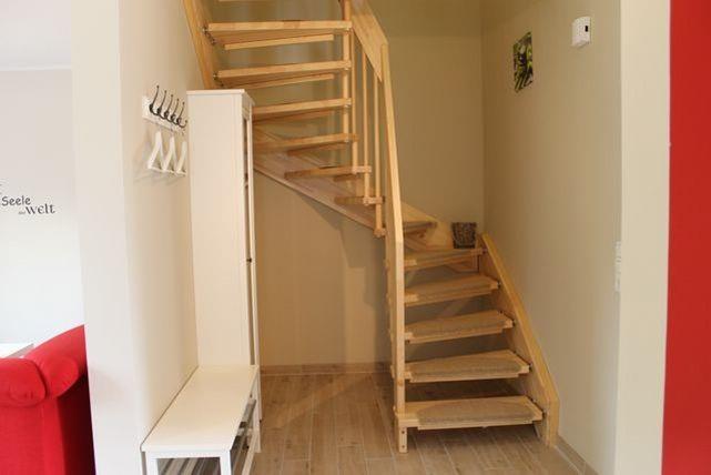 Über eine Treppe im Eingangsbereich gelangen Sie in die obere Etage des Hauses. Hier befinden sich die drei separaten modernen Schlafzimmer, die entweder mit einem Doppelbett, zwei Einzelbetten oder einem Etagenbett und jeweils genügend Stauraum für Ihre Garderobe möbliert sind.