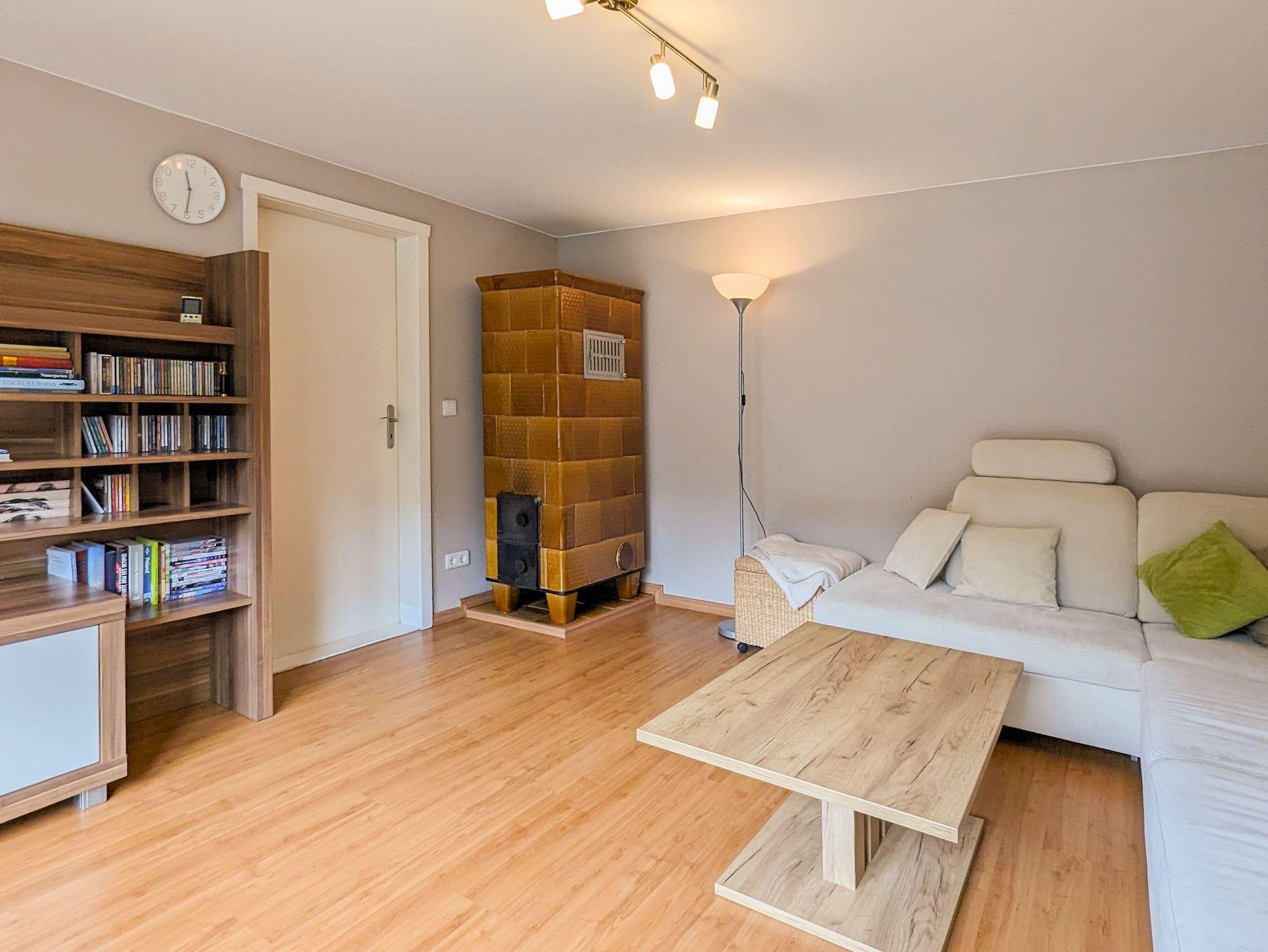 Sollte mal etwas kühl sein auf Deuschlands Sonneninsel, so seht im Wohnzimmer zusätzlich zur Heizung ein Kachelofen für kuschlige Wäme bereit.