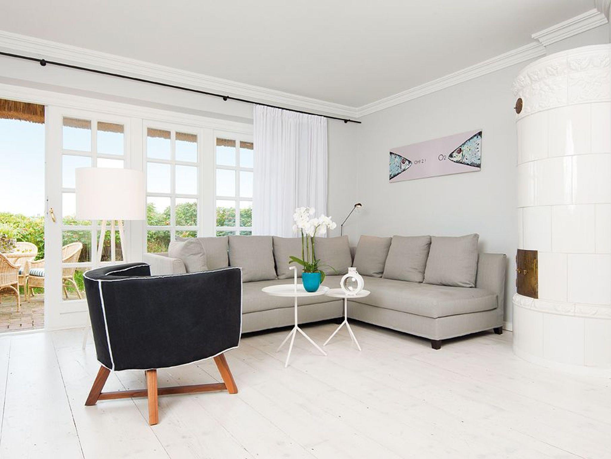 Diese schmucke Ferienwohnung unter Reet verwöhnt mit Weitblick auf Heide, Nordsee und Wattenmeer. Entsprechend kurz ist der Weg an den wunderschön weißen Sandstrand von Kampen, unweit der berühmten Sturmhaube. Das Erdgeschoss verwöhnt den Blick mit breiten Holzdielen im geräumigen Wohn- Esszimmer und ein Kachelofen sorgt für Gemütlichkeit. Die Terrasse mit Meerblick, die offene Einbauküche in puristischem Design, liebevolle Dekoration und ein Gäste-WC machen diese Etage komplett. Zwei hyggelige Doppelschlafzimmer im Untergeschoss bieten Platz für bis zu Vier, außerdem finden Sie auf dieser Etage ein zeitlos stilvolles Badezimmer mit Wanne und Dusche.