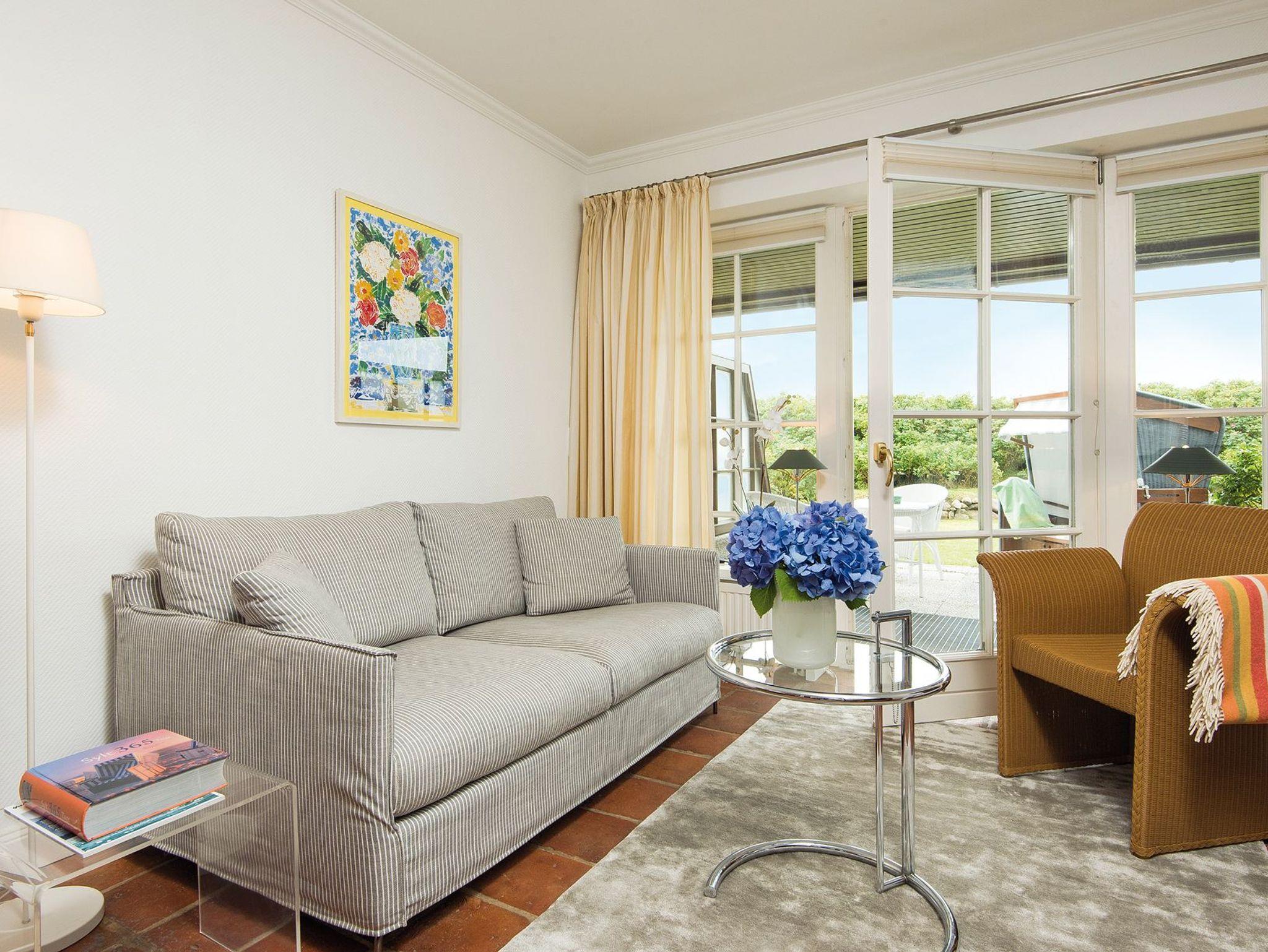 Diese Ferienwohnung besticht mit seiner Lage mitten in der Kurhausstraße unweit von Strand und Zentrum. Der helle Innenhof des Hauses führt Sie zu Ihrem Urlaubstraum. Es begrüßt Sie ein heller Eingangsbereich mit roten Steinfliesen. Daran schließt die offene Küche an, die nur durch einen Tresen vom Wohn- und Essbereich getrennt ist. Der Esstisch bietet genügend Platz für 4 Personen und lädt zu netten Abenden ein, die zu späterer Stunde in der gemütlichen Sitzecke vor dem Kamin ausklingen können. Am Tage können Sie die Sonne auf der Südterrasse im Strandkorb mit Blick auf die Uwe Düne genießen oder an den wunderschönen Kampener Strand gehen, der fußläufig schnell zu erreichen ist. Im Untergeschoss finden Sie dann ein Schlafzimmer mit zwei Einzelbetten und ein Schlafzimmer mit einem Doppelbett. Perfekt abgerundet wird das Untergeschoss durch das moderne Duschbad. Die Treppe und das Untergeschoss sind mit Teppichboden ausgelegt.