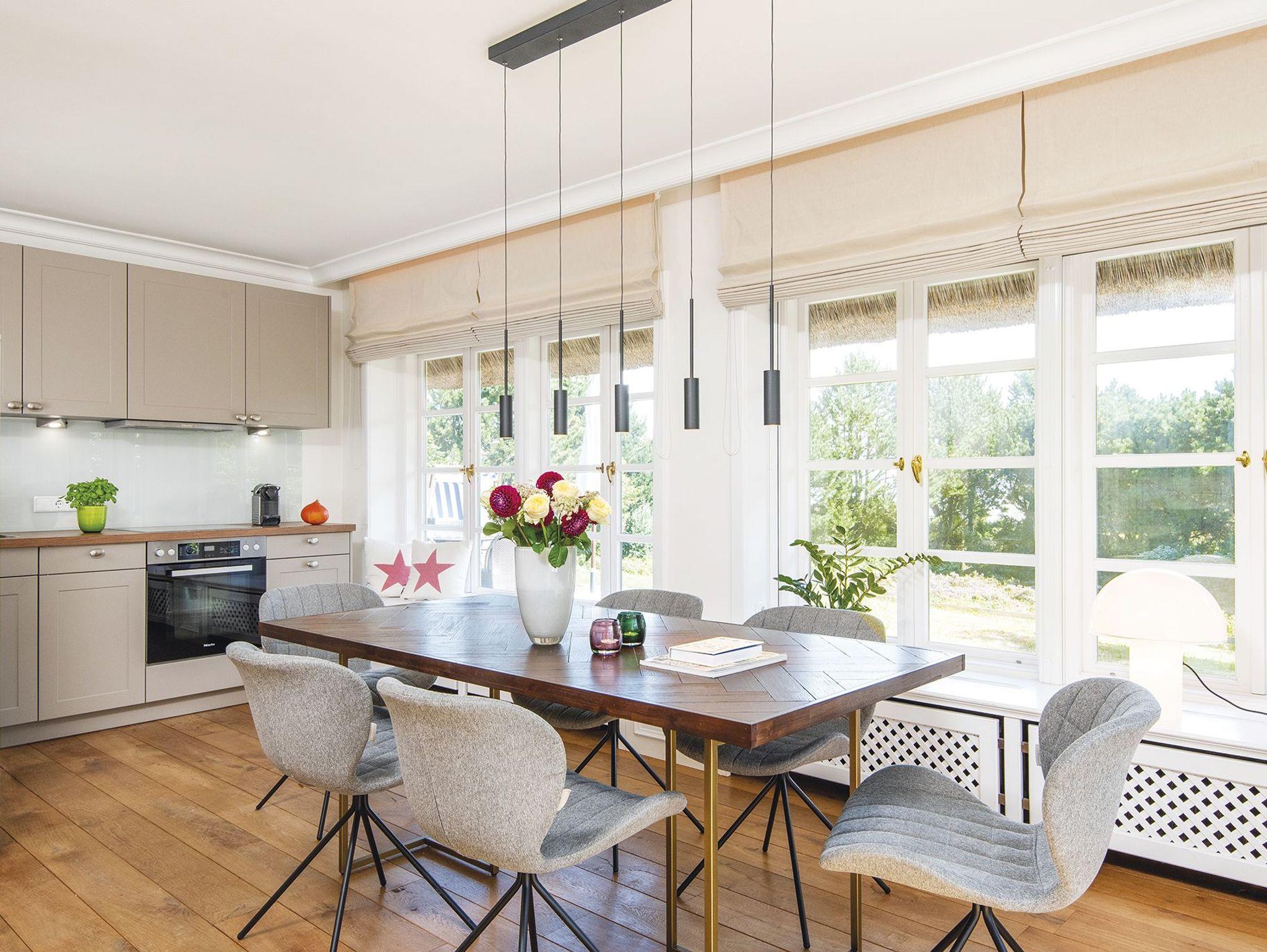 Traumhaft und exklusiv im Hobookenweg, oberhalb des Wattenmeeres - in dieser exponierten Lage präsentiert sich dieses wunderbare EckHausteil für fünf Personen. Hier ist alles in hellen Tönen gehalten, einzelne Farbakzente sorgen für eine persönliche Note. Einen Hauch von Heideduft und Meeresluft genießen Sie auf der hübsch gelegenen Südterrasse mit Strandkorb. Im Erdgeschoss finden Sie einen großzügigen Wohnraum mit TV und großen Fensterfronten nach Süden und Osten, sowie die offene moderne Küche mit Esstisch. Das Obergeschoss wartet mit einem Doppelschlafzimmer mit geräumigen Tischlereinbauten und TV, sowie einem hübschen DuschWannenbad ensuite auf, beide Räume haben einen tollen Wattblick. Im Untergeschoss gelangen Sie vorbei an dem kleinen Duschbad in ein gemütliches Doppelschlafzimmer. Von hier geht ein schönes Einzelschlafzimmer ab, erreichbar durch eine Schiebetür. Das gesamte Haus ist mit Fliesen und Holzfußboden, die Treppen mit Teppich ausgelegt.