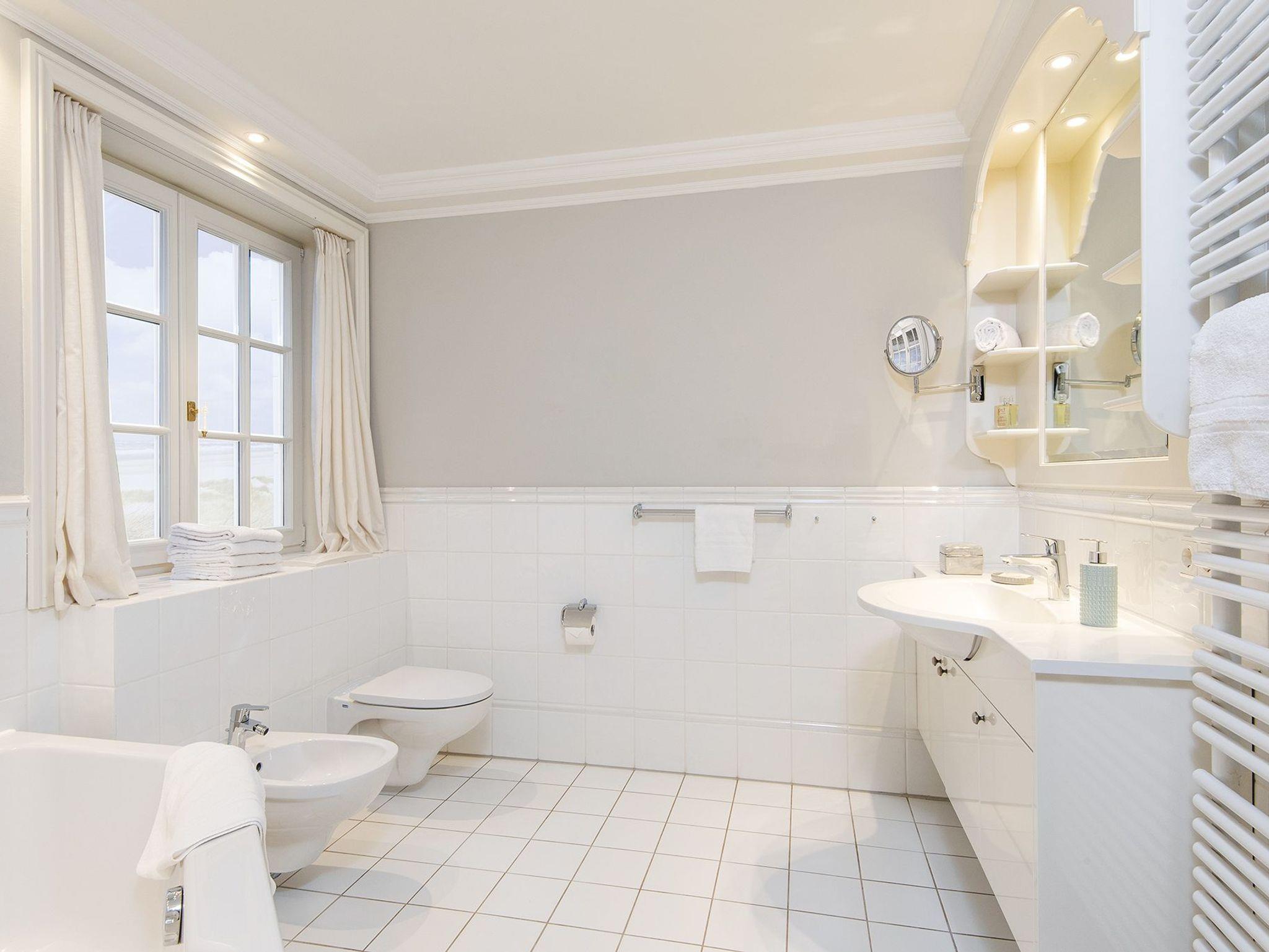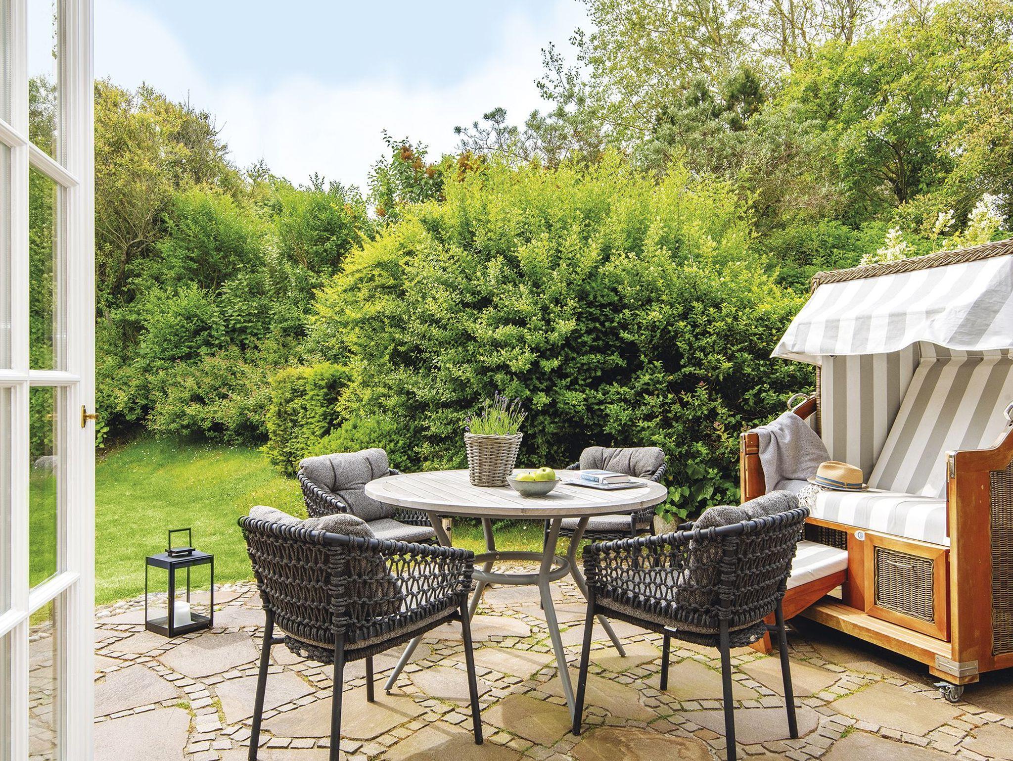 Ein elegant gemütliches Hausteil mit Platz für bis zu Fünf auf drei Etagen. Durch den kleinen Flur erreicht man direkt den stilvoll mit kleinen Farbakzenten eingerichteten Wohn-/Essbereich mit gemütlichen Polstermöbeln, Kamin, großen Fensterfronten nach Süden und Osten und einem Esstisch für gemütliche Runden, nebst voll ausgestatteter separater Küche. Von hier haben Sie auch Zugang zum hübsch eingewachsenen Garten mit Terrasse und Strandkorb nach Südosten. Im hellen Untergeschoss gibt es ein gemütliches Doppelschlafzimmer mit großem Einbauschrank und gleich nebenan ein großzügiges Bad mit Eckbadewanne. Das Obergeschoss hält ein Einzelschlafzimmer und ein Doppelschlafzimmer mit geräumigen Einbauschränken, sowie ein modernes Duschbad bereit. Das familientaugliche Quartier ist mit Terracotta- und Echtholzfußböden ausgelegt.