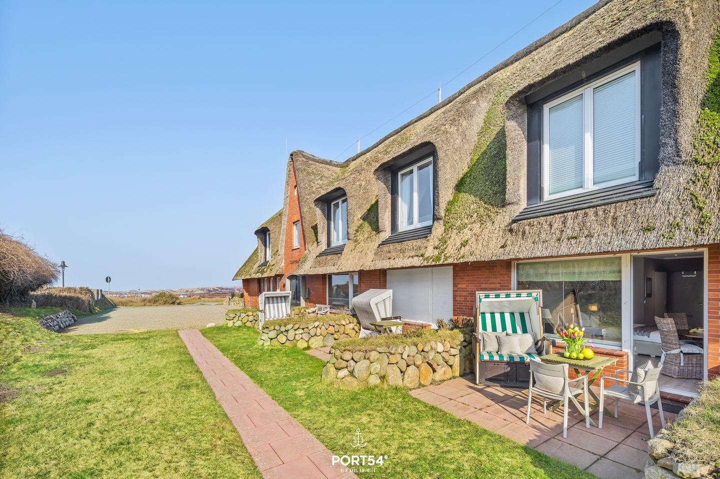 Modernes, renoviertes Studio unter Reet in Kampen – ideal für 2 Personen. Verstautes Doppelbett für mehr Platz, gemütliche Couch, Esstisch am Fenster und moderne Küchenzeile. Terrasse mit Strandkorb, Gartenmöbeln und seitlichem Meerblick. Bad mit Dusche, WLAN, Waschmaschine/Trockner. Kostenloses Parken am Haus. Kleiner Hund willkommen. Auf Wunsch mit „Lieblingsplatz No. 1“ kombinierbar.