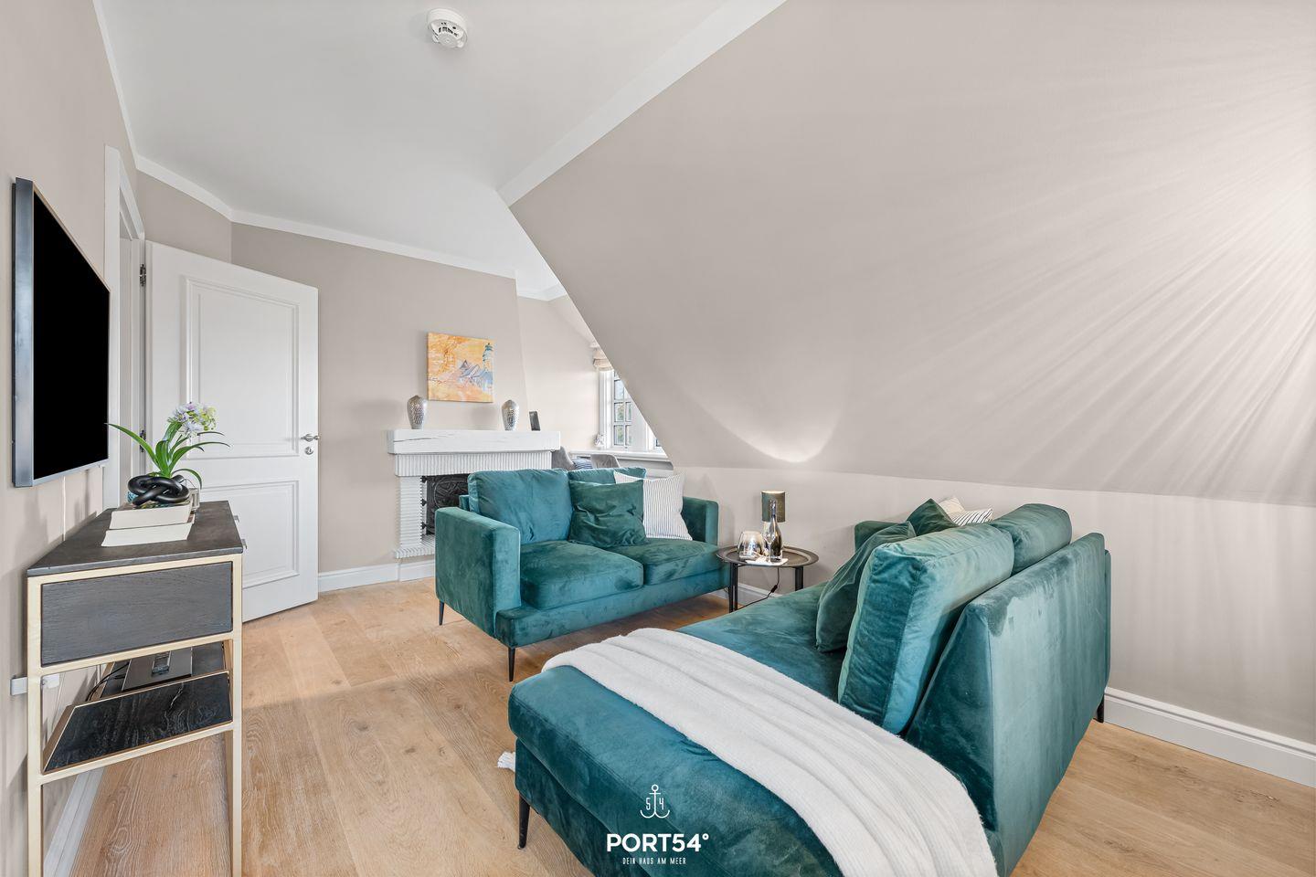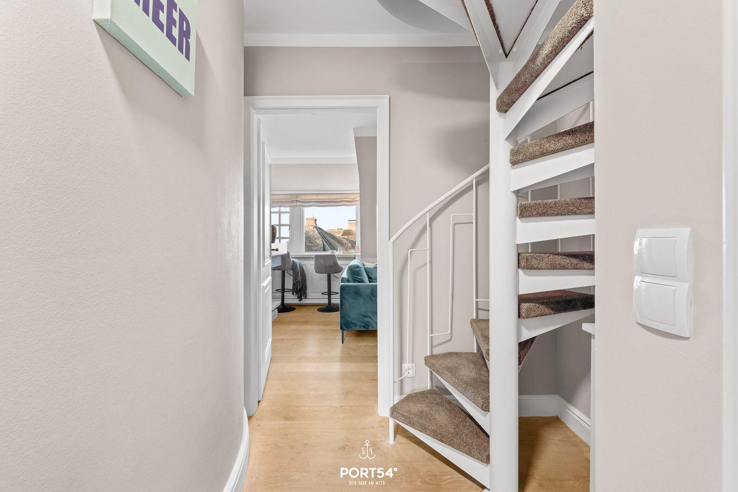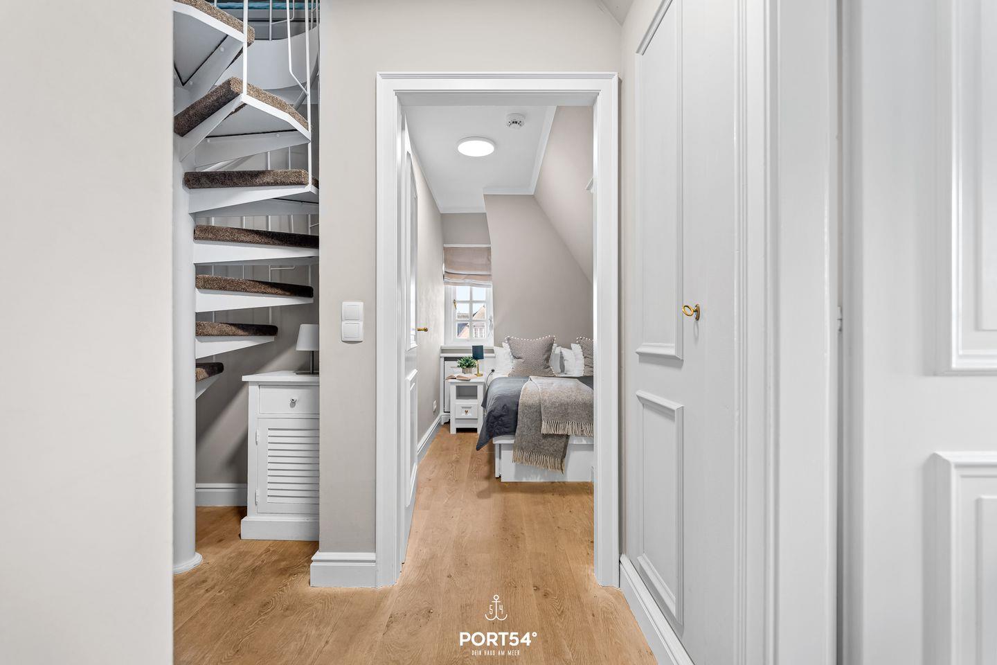 Das etwa 55 m² große Appartement verteilt sich geschickt und komfortabel auf zwei Etagen. Der einladende Wohn- und Essbereich bildet das Herzstück der Unterkunft: Helle, moderne Möbel, ein gemütliches Sofa, ein Esstisch sowie ein romantischer Kamin schaffen eine Atmosphäre, in der du dich sofort wohlfühlst. Durch die großen Fenster genießt du einen herrlichen Blick auf die Nordsee – perfekt für entspannte Stunden, einen Sundowner am Abend oder gemütliche Lesemomente. Die offen integrierte Küchenzeile ist großzügig und funktional gestaltet. Sie bietet alles, was du für einen komfortablen Aufenthalt benötigst: Backofen, Ceranfeld, Geschirrspüler, Kühlschrank mit Gefrierfach, Kaffeemaschine, Kaffeevollautomaten, Wasserkocher, Toaster sowie alle wichtigen Küchenutensilien. Ob ein schnelles Frühstück oder ein liebevoll gekochtes Abendessen – hier bleiben keine Wünsche offen.