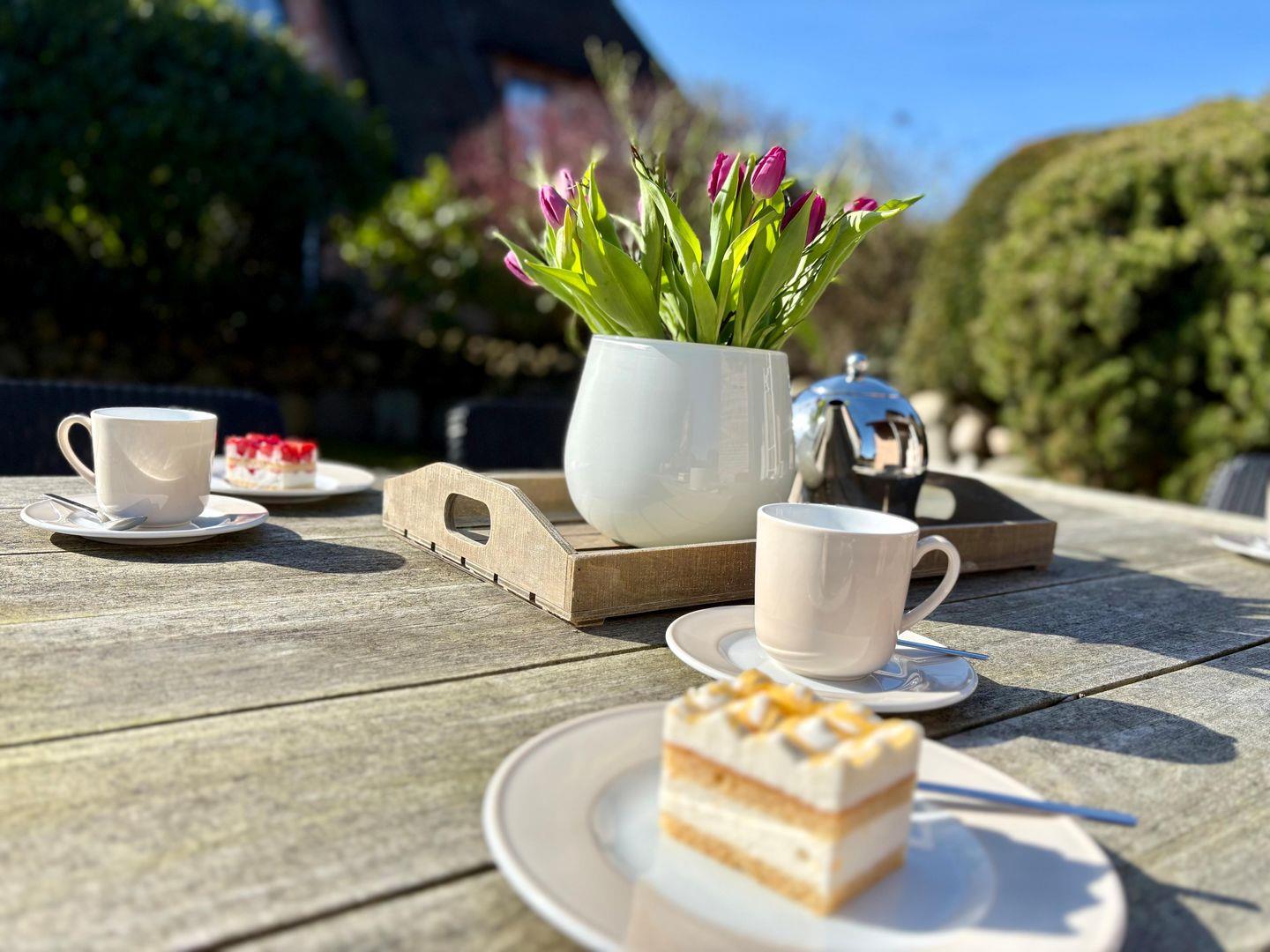Zwei Terrassentüren lassen Licht und Natur ins Haus strömen: Die Ostterrasse eignet sich perfekt für den ersten Kaffee in der Morgensonne, die nach Süden ausgerichtete Terrasse mit Essplatz lädt zu langen, entspannten Stunden im Freien ein.