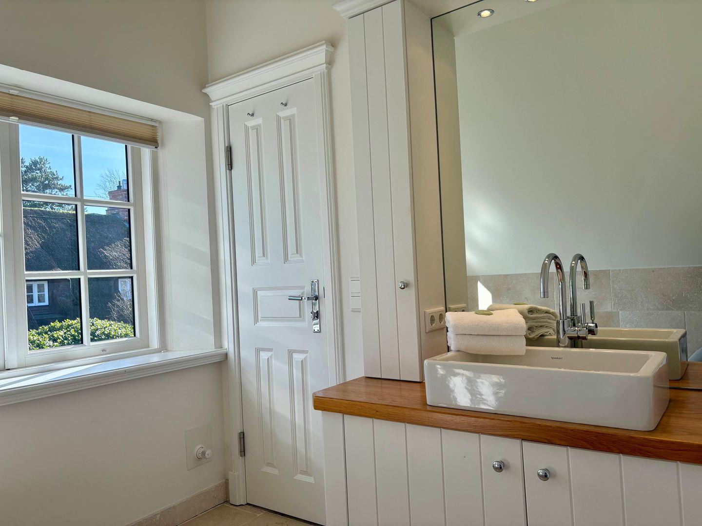 Im Obergeschoss erwartet Sie eine kleine Galerie mit Arbeitsplatz – ideal zum Lesen oder Arbeiten – sowie ein verwunschenes, leicht verwinkeltes Doppelschlafzimmer mit großzügigem Einbauschrank und Wannenbad. Ein weiteres Schlafzimmer mit kleinem Doppelbett (160cm breit) und eigenem Duschbad rundet diese Etage ab.