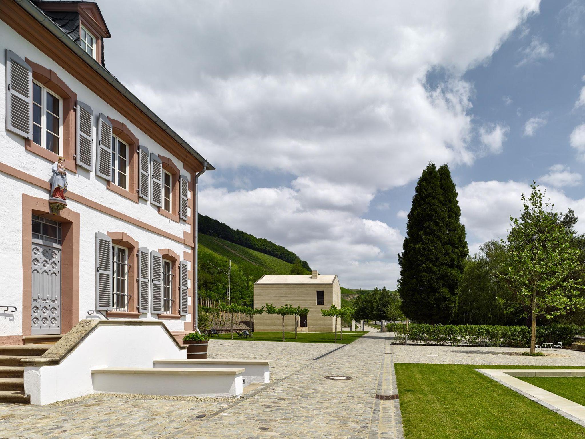 Zwei Zimmer in der neu erbauten Remise, benannt nach den Weinlagen Klosterberg und Kupp, erwarten Sie mit durchdachtem Design und puristischer Formensprache: Übernachten in der Gedankenwelt des Architekten.