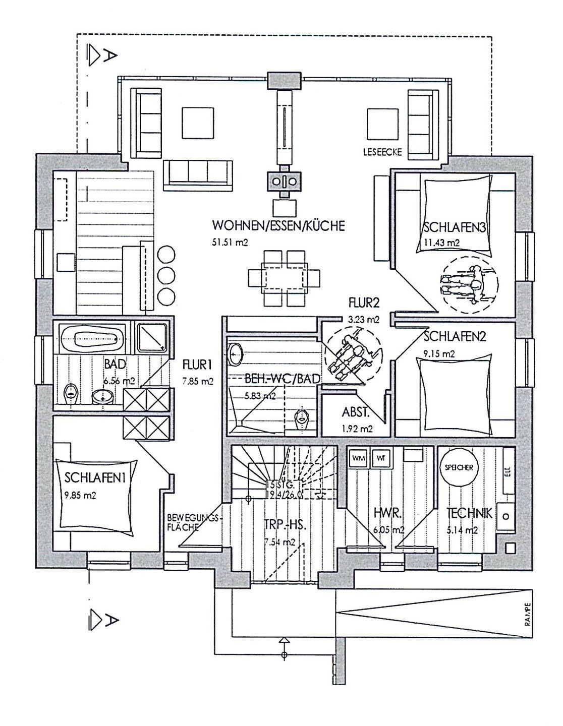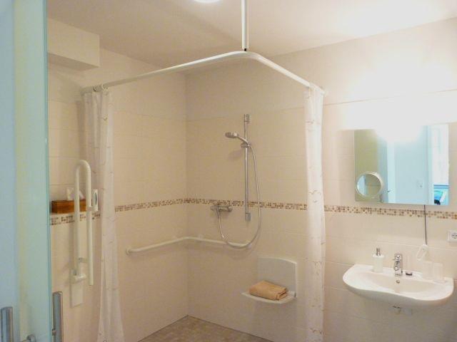 Ein zusätzliches Bad ist rollstuhlgerecht ausgebaut und verfügt über eine ebenerdige Dusche.