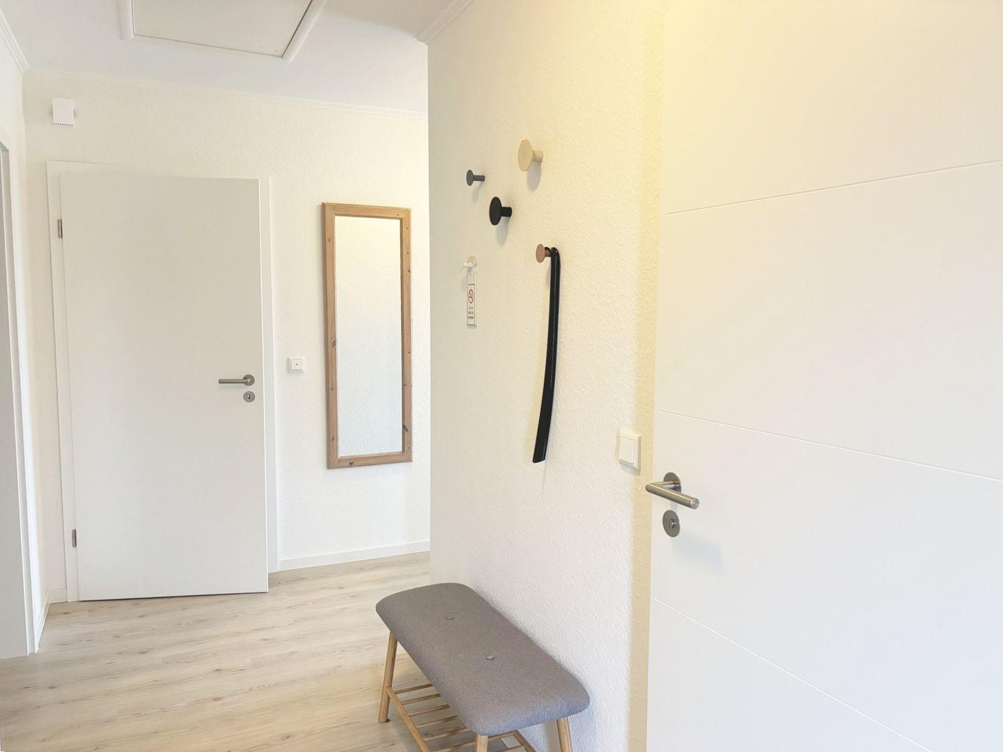 In der gesamten Wohnung sorgt eine Fußbodenheizung für angenehmes Raumklima – auch an kühleren Tagen. Ein kleiner Abstellraum innerhalb der Wohnung bietet Platz für Gepäck oder Haushaltsutensilien. Hier finden Sie auch Reinigungsgeräte wie Staubsauger und Wäscheständer.