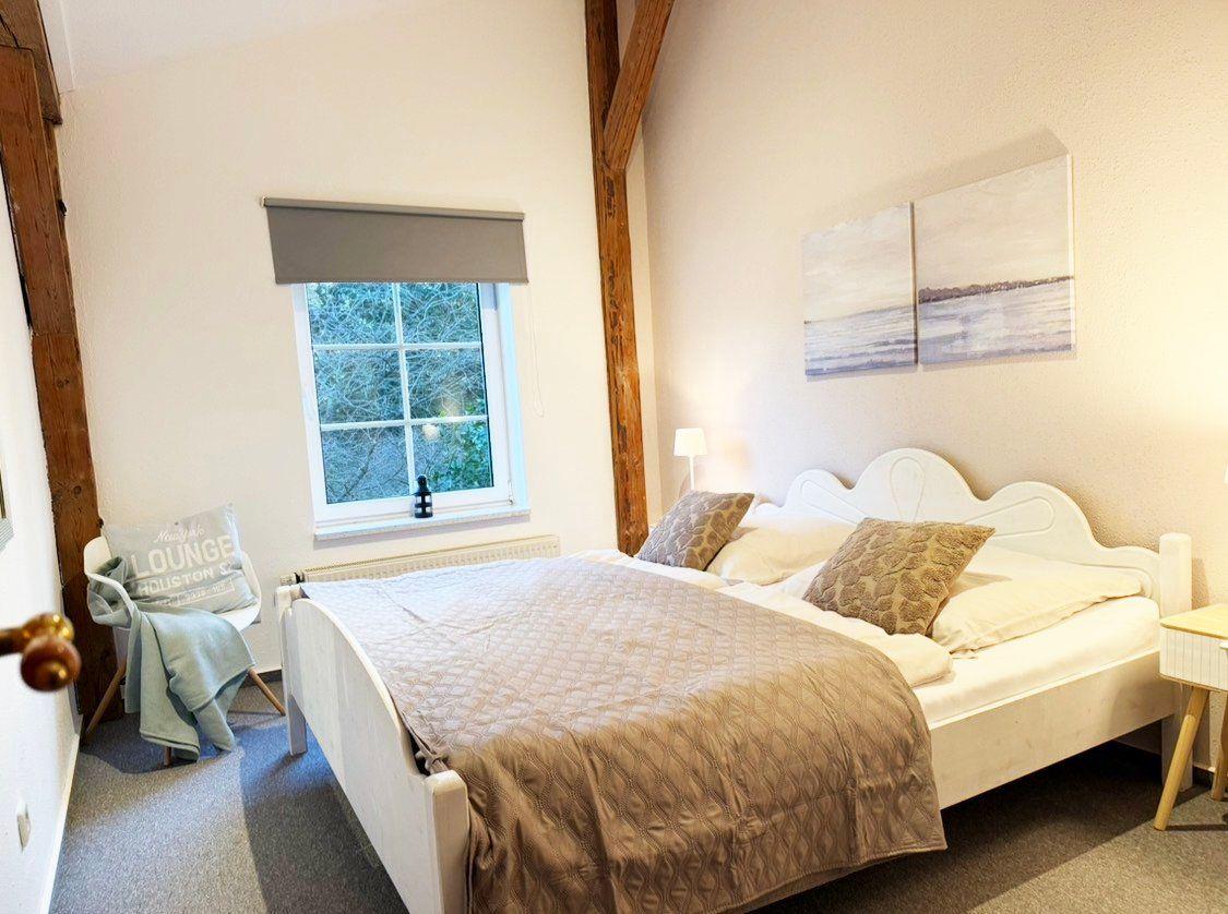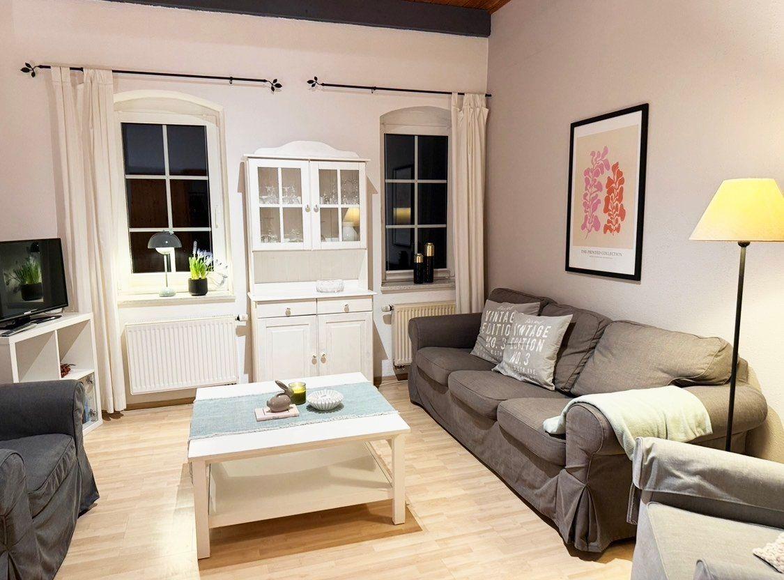 Diese großzügige, ca. 110 Quadratmeter große Ferienwohnung erstreckt sich über zwei Etagen (Erdgeschoss und 1. Obergeschoss) und bietet mit drei Schlafzimmern komfortabel Platz für bis zu 6 Personen. Das Herzstück der Unterkunft bildet das separate Wohnzimmer, das mit einer gemütlichen Sitzgruppe aus Sofa und Sessel zum Entspannen einlädt und einen idyllischen Ausblick auf den 5.000 Quadratmeter großen Bauerngarten bietet. Die offene, voll ausgestattete Küche mit angrenzendem Essbereich ermöglicht gesellige Mahlzeiten; zur weiteren Unterhaltung stehen WLAN, SAT-TV, Radio sowie eine Auswahl an Büchern und Spielen bereit.