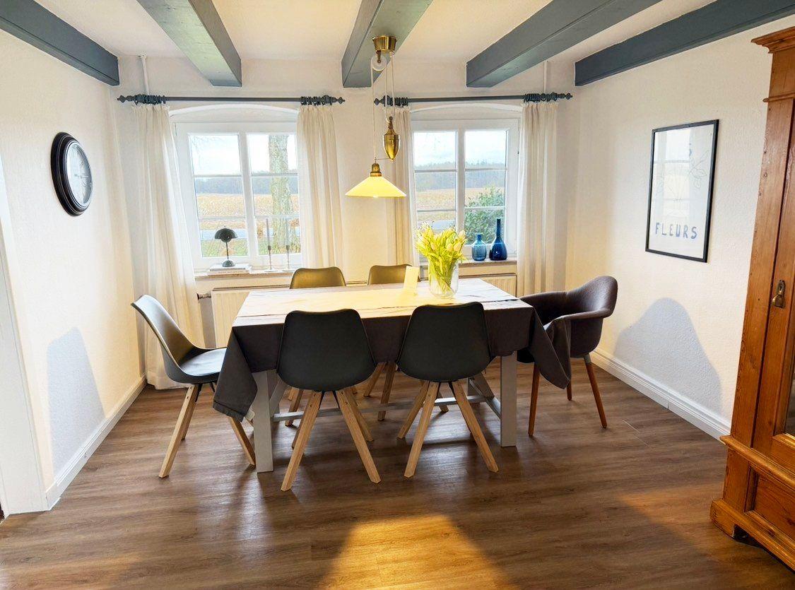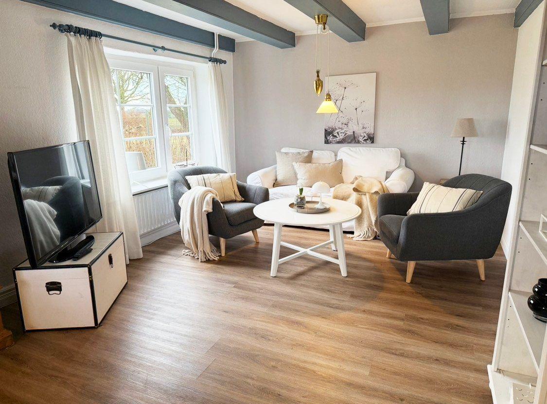 Genießen Sie einen unvergesslichen Urlaub in der „Blauen Käsekate“, einem liebevoll gepflegten, rund 220 Jahre alten Reetdachhaus, das den idealen Rückzugsort für Erholungssuchende und Naturfreunde bietet. Die etwa 90 Quadratmeter große, romantische Ferienwohnung verbindet das historische Ambiente eines traditionellen Bauernhauses mit modernem Komfort und bietet auf drei Zimmern viel Platz für bis zu vier Personen.