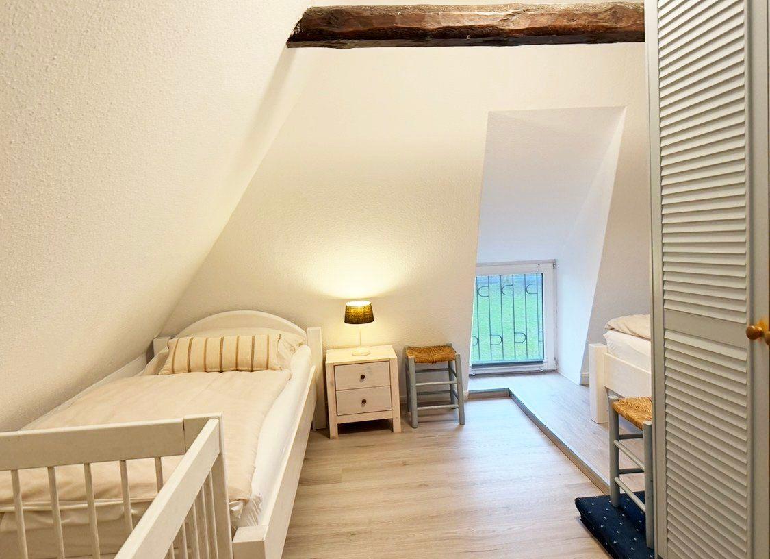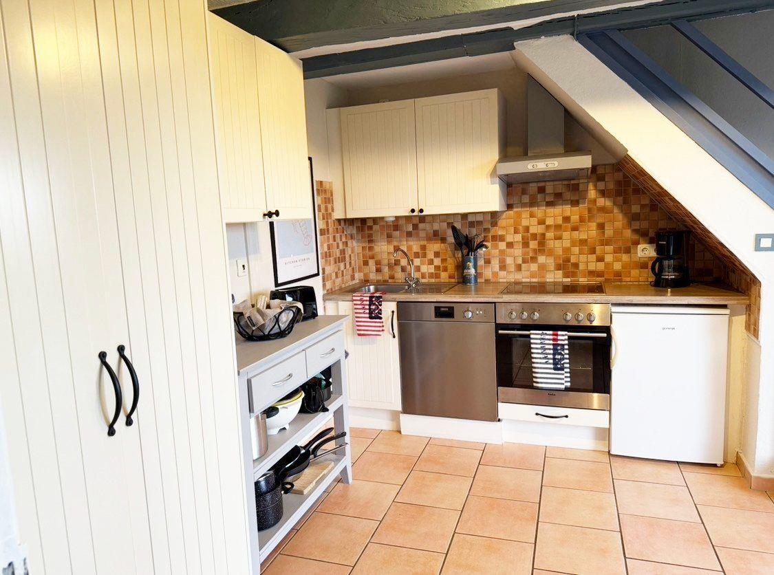 Der helle Wohn- und Essbereich bildet das Herzstück der Wohnung und ist mit einem gemütlichen Sofa, bequemen Sesseln und einem Esstisch ausgestattet, der zu gemeinsamen Mahlzeiten oder Spieleabenden einlädt. Für Ihre Unterhaltung stehen SAT-TV, ein Radio sowie eine Auswahl an Büchern und Spielen bereit; WLAN ist selbstverständlich inklusive. Die separat abgeschlossene Küche ist voll ausgestattet und lässt mit einem Cerankochfeld, Backofen, Geschirrspüler sowie sowohl einer Nespresso- als auch einer Filterkaffeemaschine keine Wünsche offen. Auch an die kleinen Gäste ist gedacht: Ein Kinderreisebett, ein Hochstuhl und Treppengitter stehen für Sie bereit.