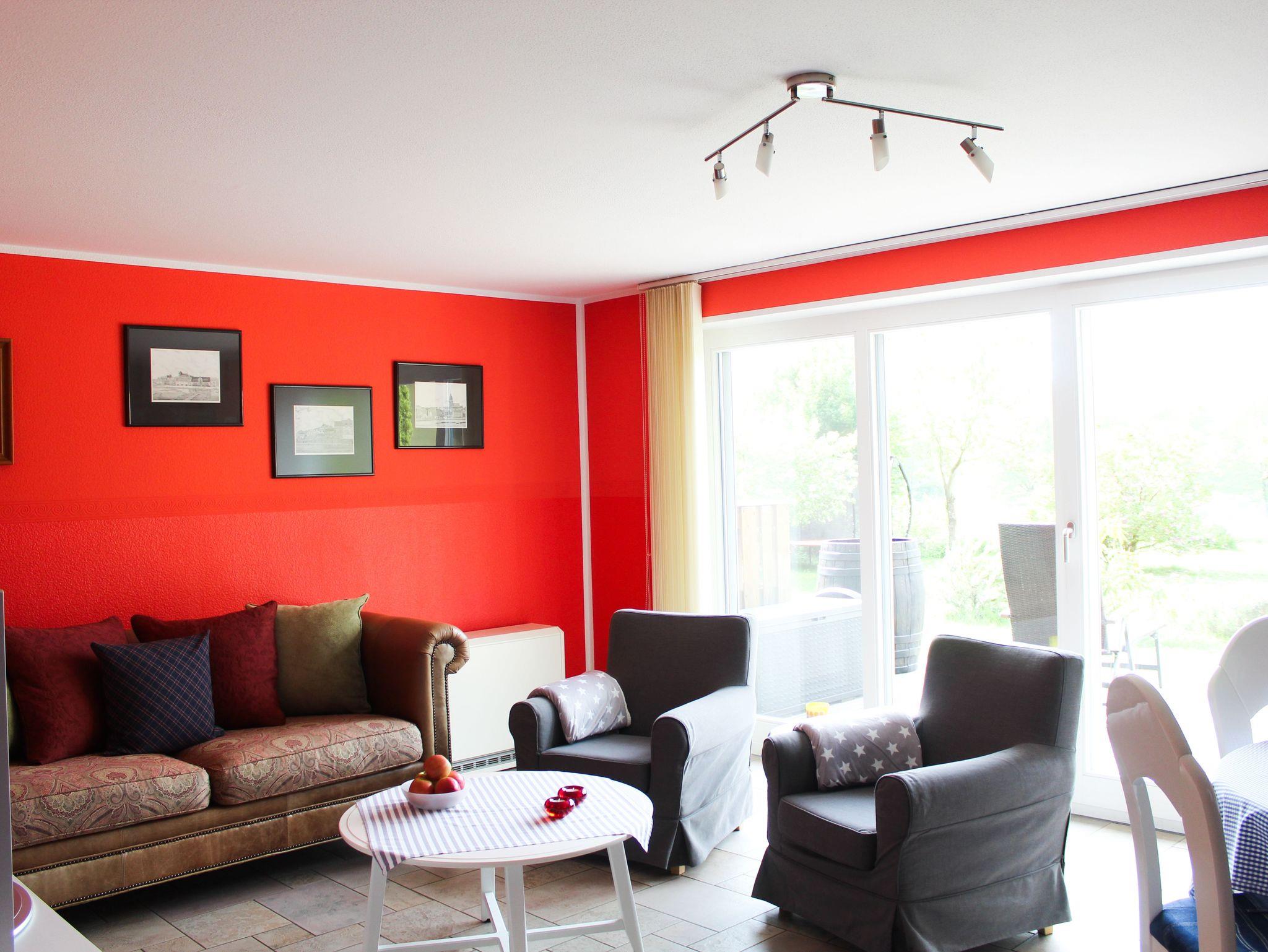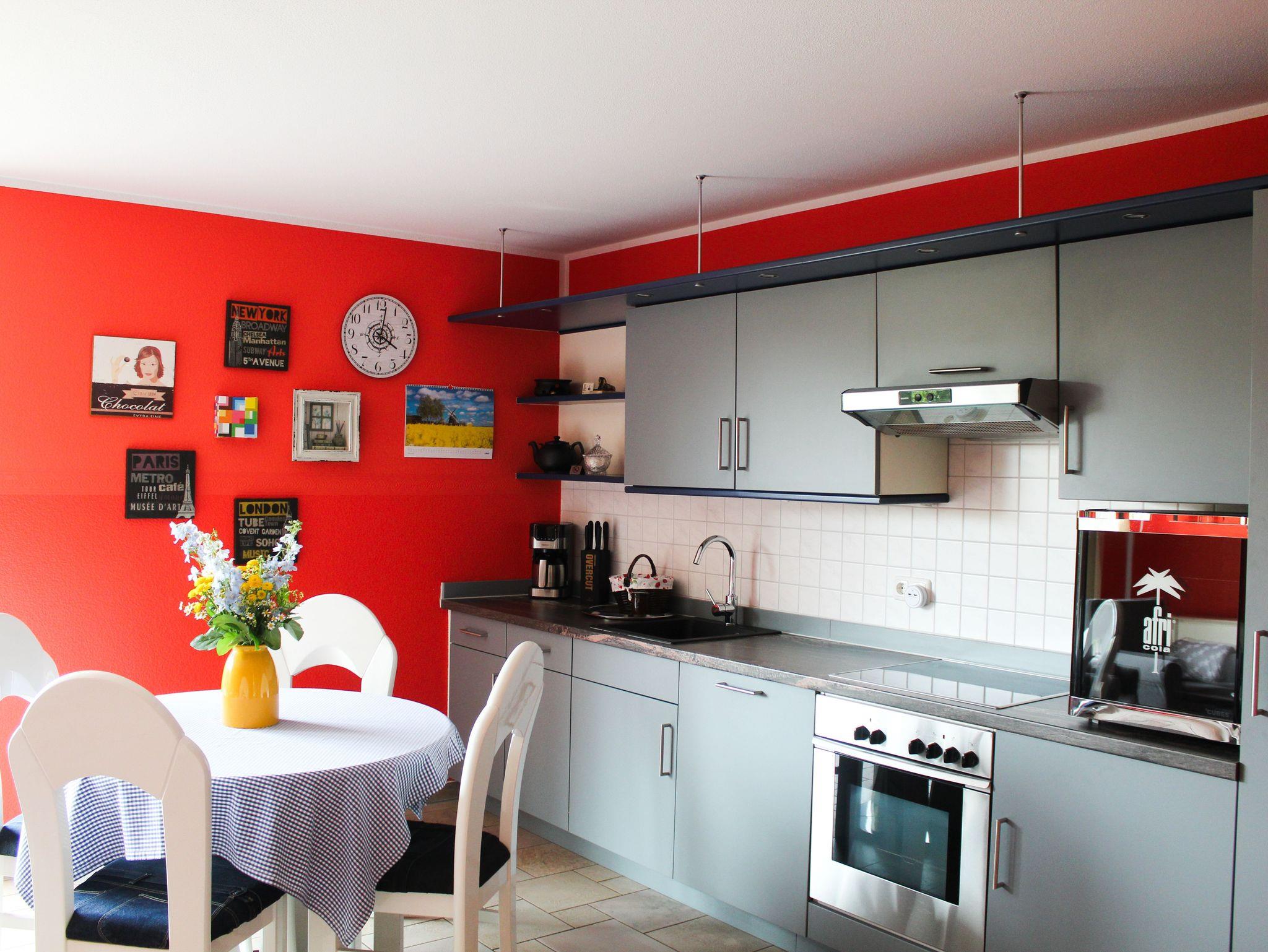 Sie verfügen beide über 2 gemütliche Schlafzimmer (1 Doppelbettzimmer und ein Zimmer mit zwei Einzelbetten) im Obergeschoss, einem sehr geräumigen Wohn- und Essbereich (Einbauküche mit Geschirrspüler, Herd/Backofen, Kühlschrank mit Gefrierfach, Esstisch, große Couch im Colonialstil, großer LCD Fernseher) und einem Bad mit Fussbodenheizung und Dusche im Untergeschoss. Von dort aus gelangen Sie auf die großzügige Terrasse. Natürlich finden Sie dort auch Tisch, Stühle und einen riesigen Sonnenschirm. Auf Wunsch stellen wir Ihnen kostenlos einen Grill zur Verfügung. Ein Parkplatz auf unserem Hof (abschliessbar) gehört natürlich auch dazu. WLAN steht Ihnen kostenfrei zur Verfügung.