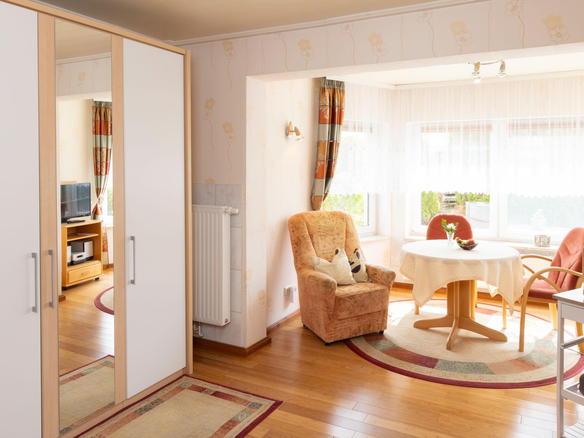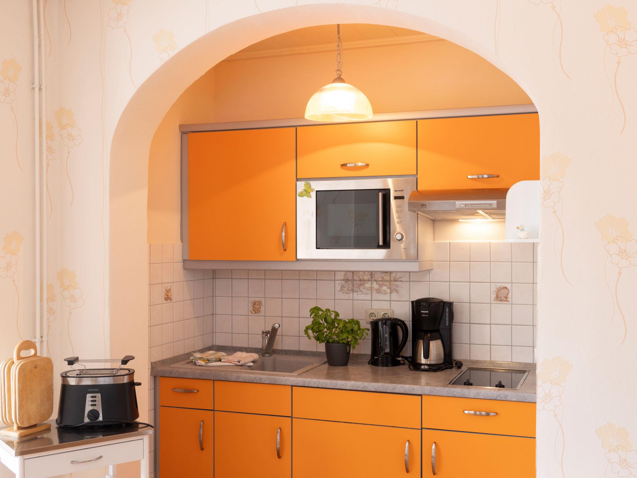 "Hummel", 1-room apartment 33 m2, on the ground floor. Object suitable for 2 adults. Very cosy furnishings: open living/sleeping room with 1 double bed (180 cm, length 200 cm), satellite TV and radio. Kitchenette (2 hot plates, toaster, kettle, microwave, electric coffee machine) with dining table. Shower/WC. Terrace. Terrace furniture. Facilities: children's high chair, baby cot for up to 3 year olds, hair dryer. Internet (WiFi, free). Parking. Please note: suitable for families. Non-smokers only. Smoke alarm.