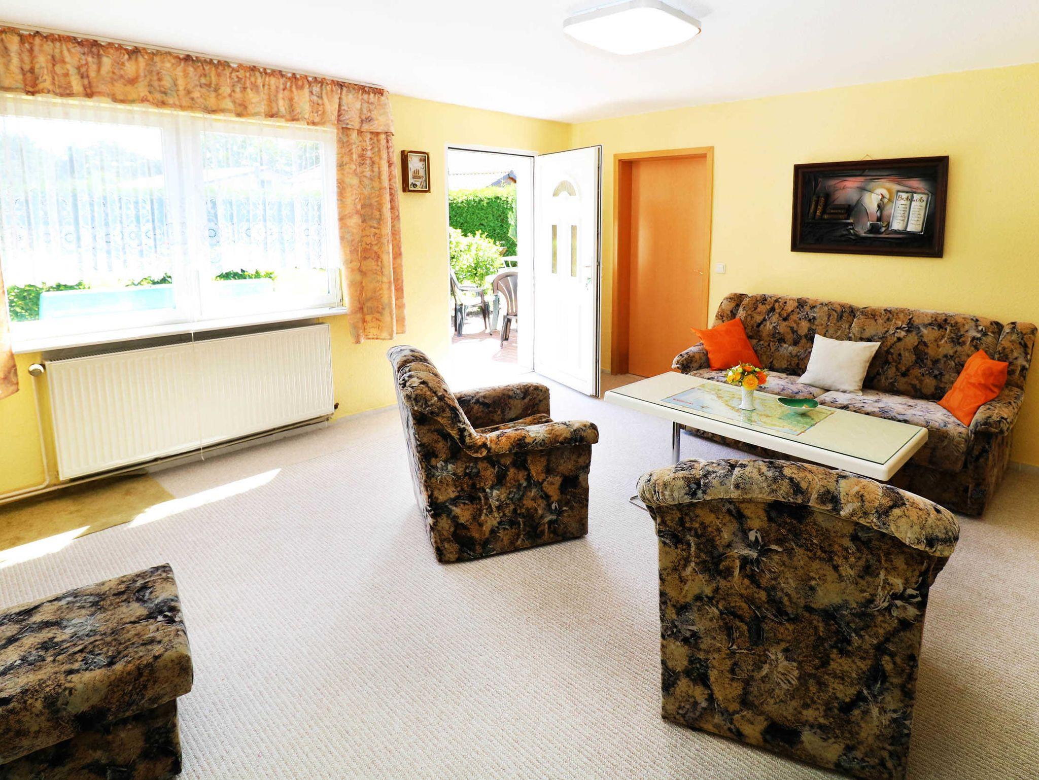 Das Ferienhaus URLAUBSIDYLL1 mit Garten und großer Sonnenterrasse bietet 4 Personen reichlich Platz. Alle Räume befinden sich im Erdgeschoss. Die Ausstattung der Wohnung ist gemütlich und es ist alles da, um einen erholsamen Urlaub zu geniessen. Weiterhin haben alle Räume Fenster, sodass es in der Ferienwohnung hell und freundlich ist. Es darf gegrillt werden. W-LAN ist vorhanden. Ein Autostellplatz steht zur Verfügung.