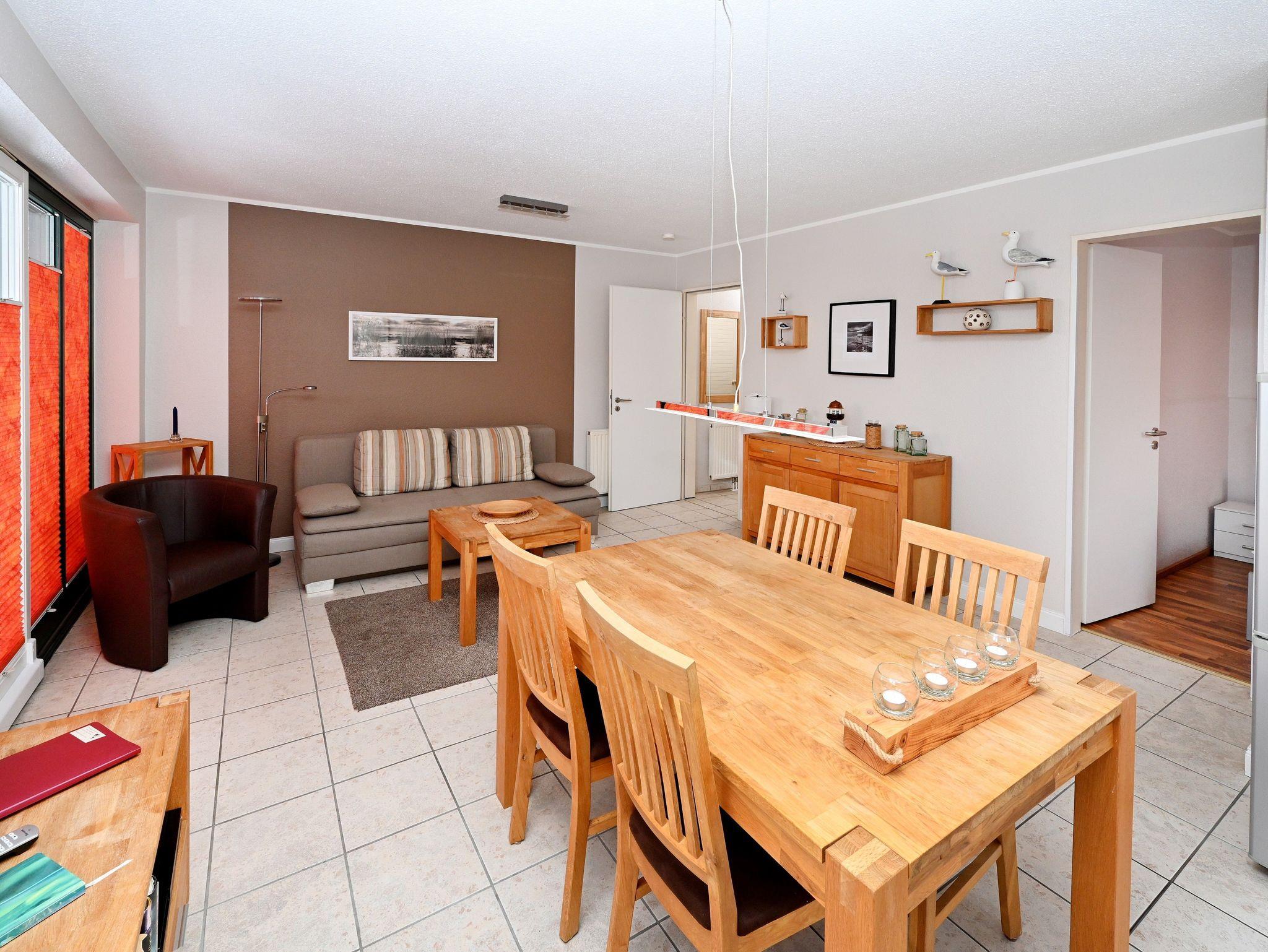 Nur etwa 300 Meter vom feinsandigen Hauptstrand entfernt, ist Michel der ideale Ort für Erholungssuchende, die die Natur und das Meer genießen möchten. In unmittelbarer Nähe finden Sie alles, was Sie für einen angenehmen Aufenthalt brauchen: Promenade, Einkaufsmöglichkeiten, Restaurants, Minigolf, Spielplätze und Tennisplätze sind bequem zu Fuß erreichbar. Der Blick auf den kleinen Wald gegenüber der Wohnung sorgt für eine entspannte Atmosphäre.