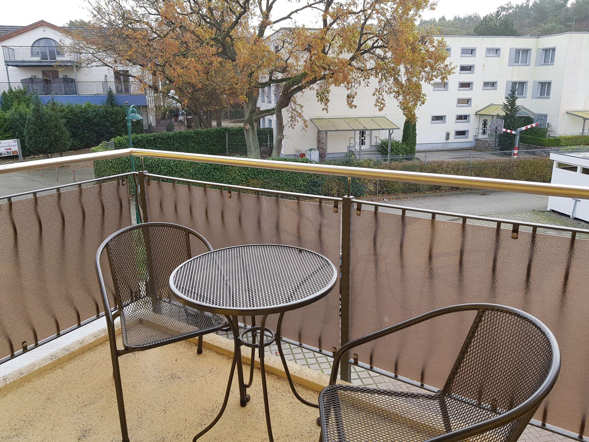 Das attraktive Ferienappartement im 1.OG besteht aus einem Schlaf- und einem Wohnraum mit Kamin und Balkon. Die Küche ist ausgestattet mit Geschirrspüler, Herd mit Ceranfeld, Mikrowelle mit Grill- und Backfunktion, Kühlschrank, Toaster und Kaffeemaschine. Im Wohnraum befindet sich ein Mediencenter mit SAT-TV, Radio und DVD-Spieler. Sie können die Mahlzeiten entweder im Restaurant im EG oder auf dem eigenen Balkon genießen. Neben dem Doppelbett im Schlafzimmer kann die Schlafcouch im Wohnzimmer zur Aufbettung genutzt werden. Der Boden ist mit Fußbodenheizung ausgestattet und mit Design-Vinyl Bodenbelag oder Fliesen belegt. Vom Schlafzimmer kann man teilweise die Ostsee sehen.