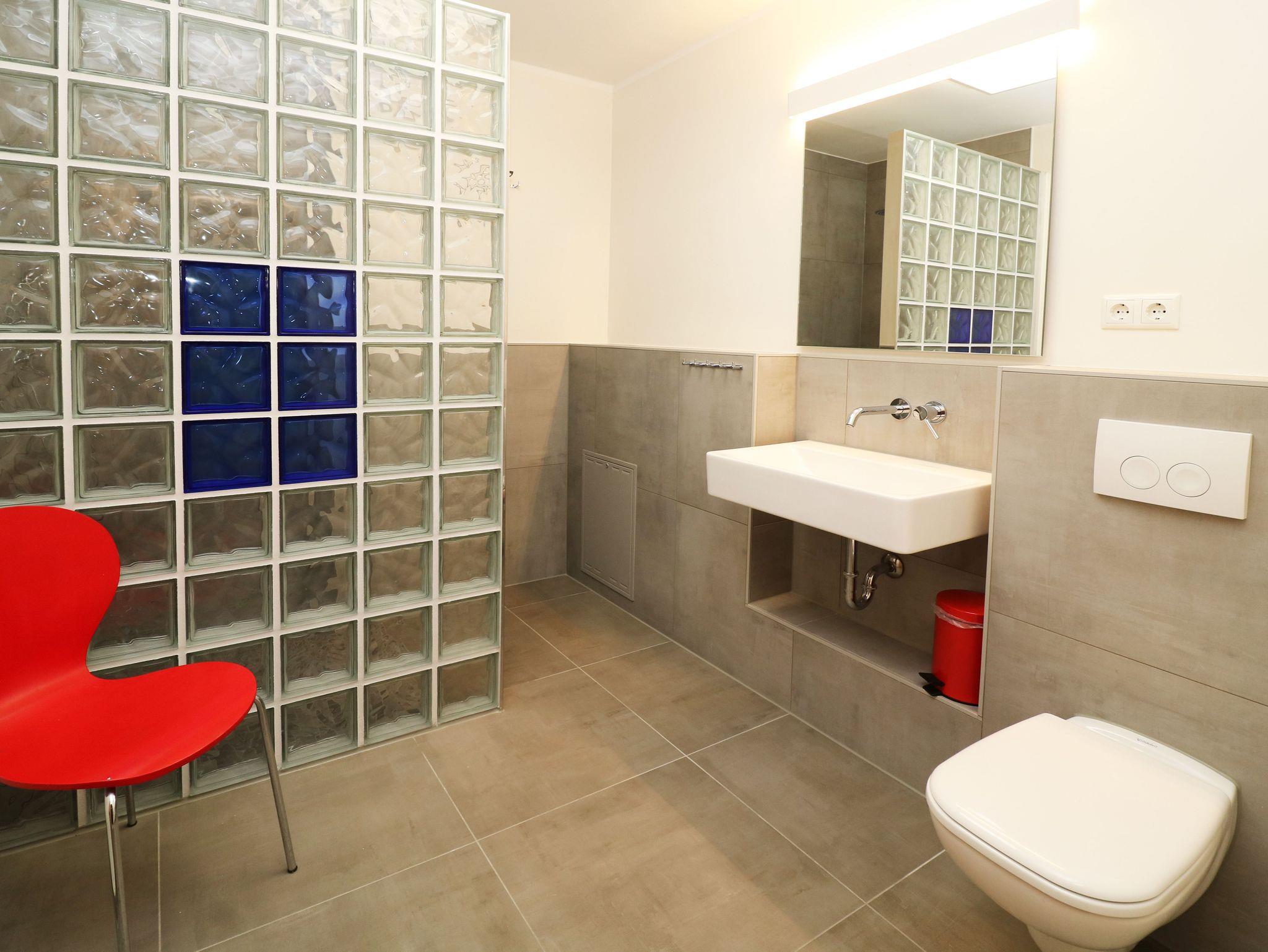 Die Ferienwohnung Q08 im Quartier 18 befindet sich im zweiten Obergeschoss und bietet auf 80 m² komfortablen Raum für bis zu fünf Personen sowie ein Baby im Kinderbett. Sie verfügt über zwei Schlafzimmer, ein modernes Badezimmer mit großzügiger, ebenerdiger WALK-IN-Dusche sowie ein separates Gäste-WC. Das helle, einladende Wohnzimmer führt auf einen geräumigen Balkon mit Blick auf den Hof und den Parkplatz.