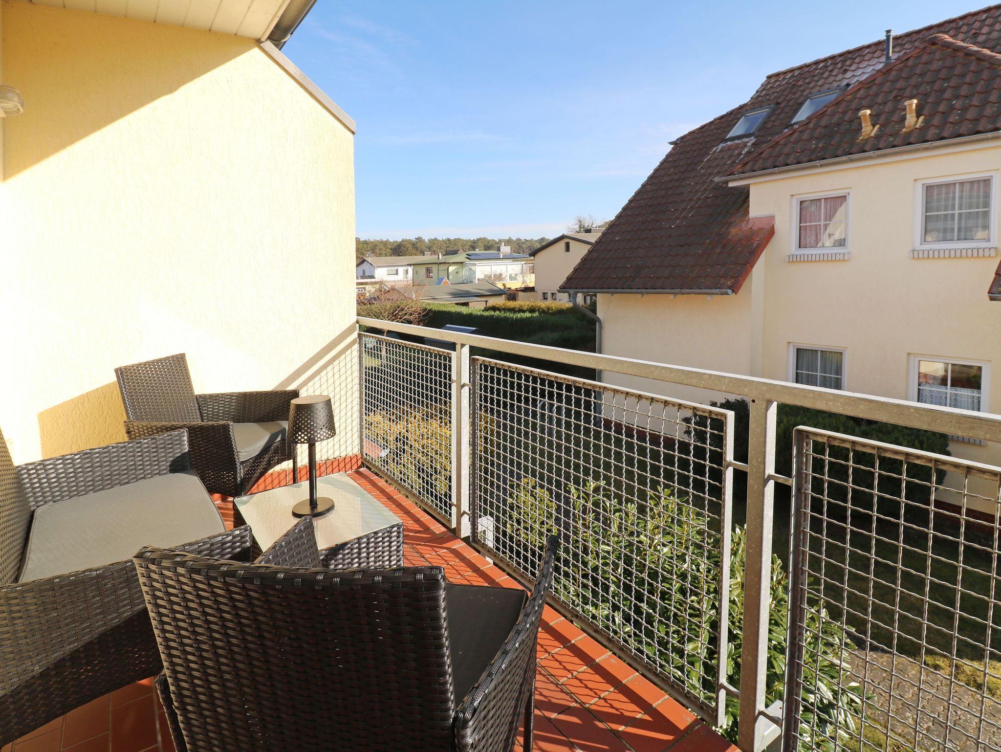 Die Ferienwohnung Sommergarten 4008 befindet sich im Obergeschoss in dem ruhig und doch zentral gelegenen Objekt und bietet reichlich Platz für 4 Personen und ein Baby, welches noch im Babybett schläft. Auf dem Balkon sind Sitzmöbel und Tisch vorhanden.