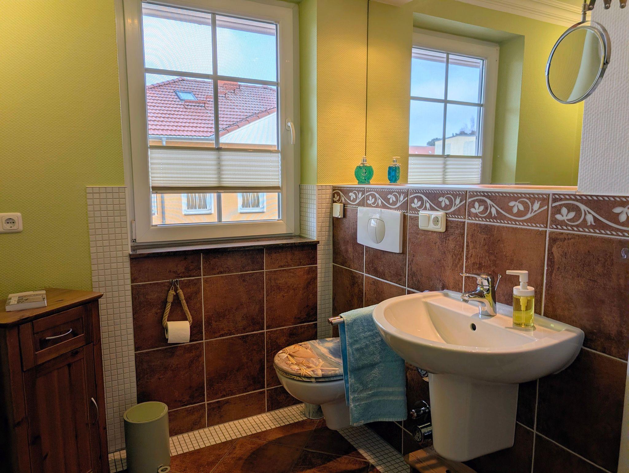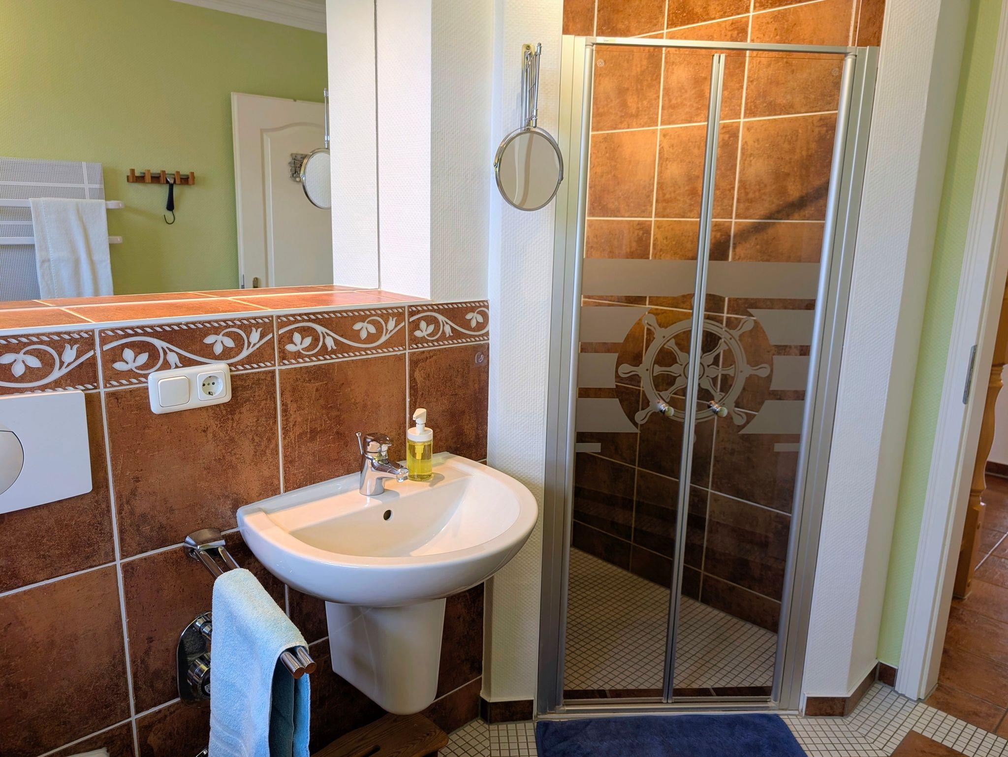 - Bad mit Dusche, Waschtisch und WC