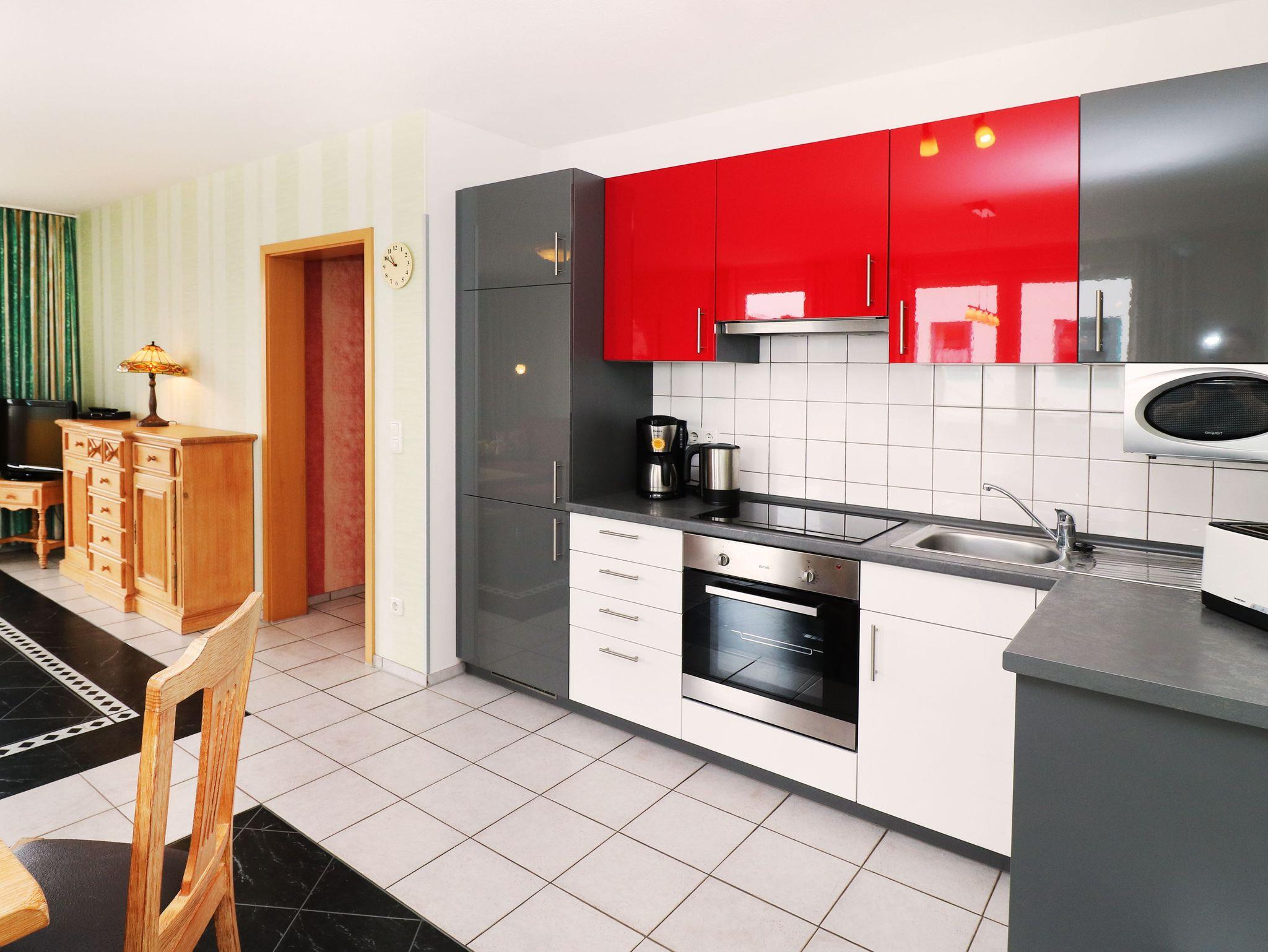Die Küche ist vollständig ausgestattet und bietet alles Notwendige für eine bequeme Selbstverpflegung.