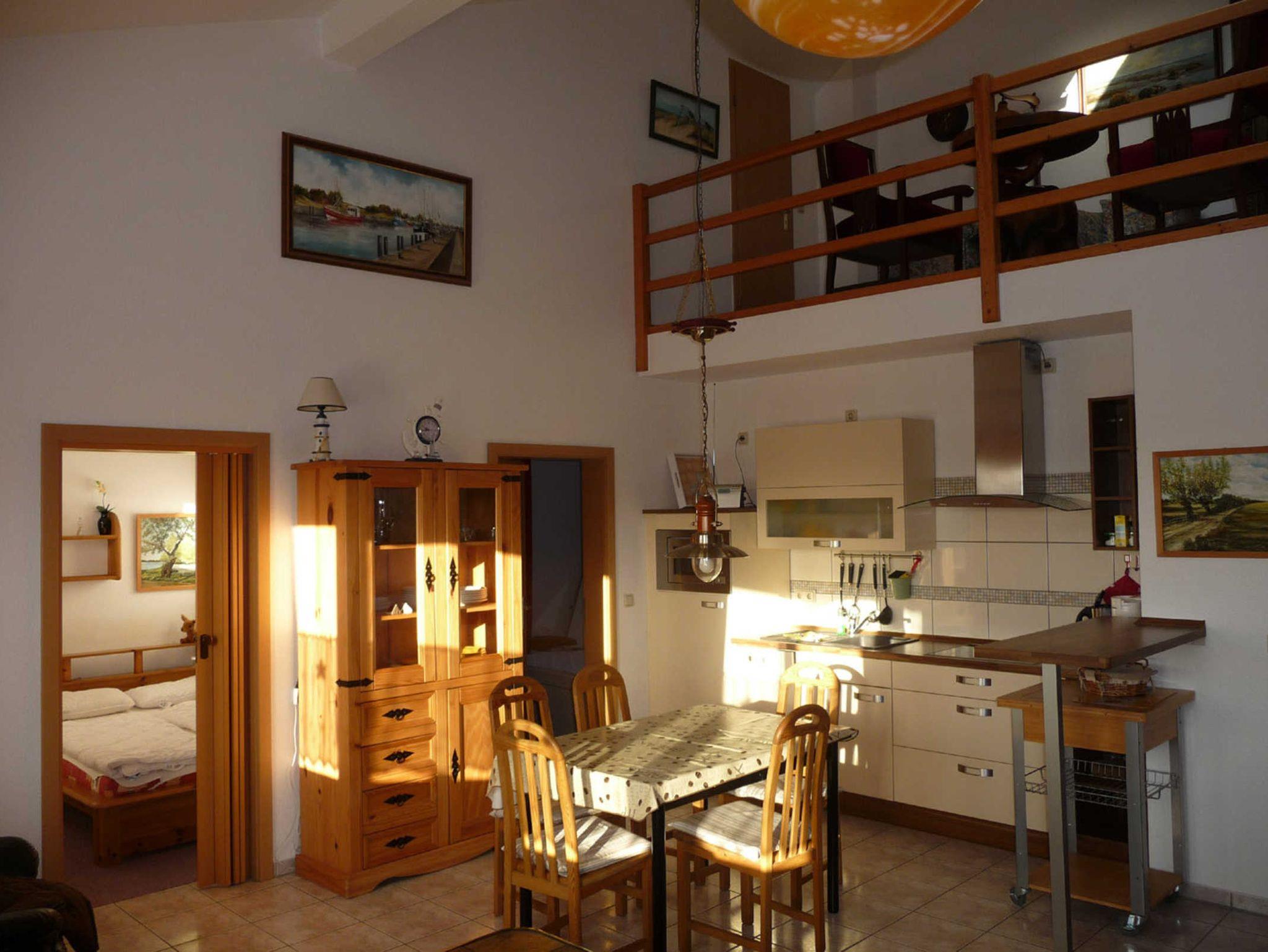 Im oberen Bereich befindet sich die offene Galerie - zu erreichen über eine Treppe (Raumspartreppe) - Bitte beachten sie, diese Treppe ist sehr steil und könnte für körperlich eingeschränkte Personen und kleinere Kinder ein Problem darstellen.