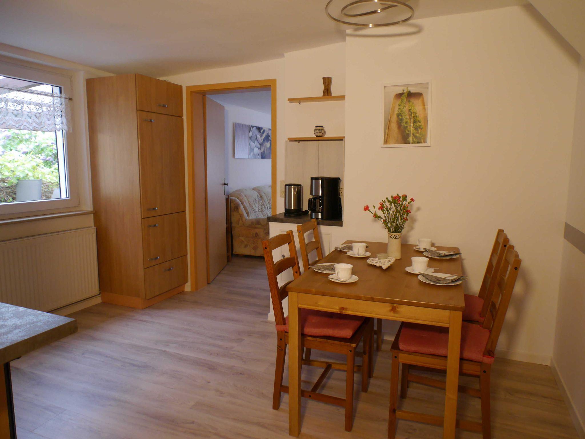 Die Ferienwohnung verfügt über Sat-TV und Radio und hat eine Wohnküche mit Herd, Geschirrspüler, Kühlschrank, Toaster, Mikrowelle, Kaffeemaschine und Esstisch sowie ein Bad mit WC, Waschtisch und Dusche. Die Ferienwohnung ist modern eingerichtet und verfügt über eine überdachte Terrasse mit Gartenmöbeln und Grill. Kinderzimmer mit 3 Betten, Schlafzimmer mit Doppelbett, Aufbettung (auch Kinderbett) ist möglich. Die Wohnung wurde im Winter 2021 grundlegend saniert.