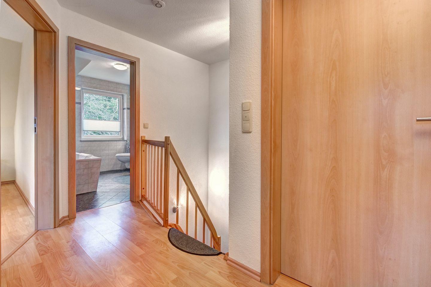 - Das Wohnzimmer lädt mit einer Ledersitzgarnitur, bestehend aus einem Zwei- und Dreisitzer sowie einem Sessel, zum Verweilen ein.