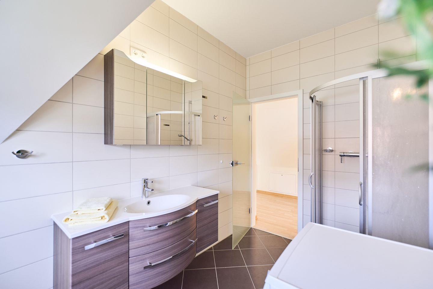 Die moderne Unterkunft verfügt über zwei einladende Schlafzimmer, in denen Sie nach einem erlebnisreichen Tag wunderbar zur Ruhe kommen können. Jedes Schlafzimmer ist komfortabel eingerichtet, sodass Sie einen erholsamen Schlaf genießen können. Die beiden Badezimmer bieten mit einem großzügigen Duschbereich und komfortablen Einrichtungen zusätzlichen Platz und Privatsphäre für alle Gäste. Zusätzliche Extras wie Bettwäsche und Handtücher (diese sind NICHT in Ihrer Buchung enthalten),können über unsere Gäste-App dazu gebucht werden.