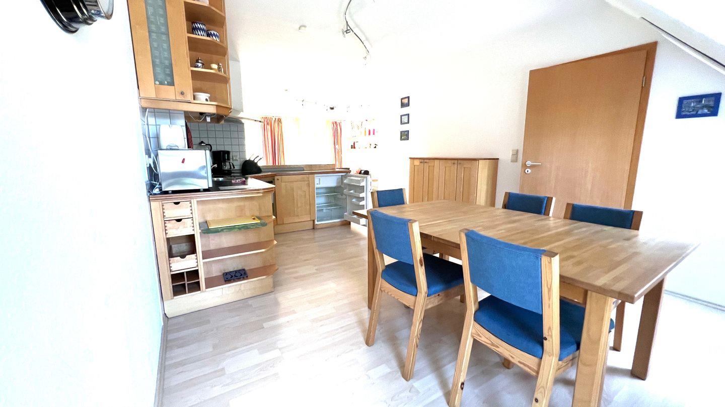 Die Ferienwohnung besticht durch zwei helle Schlafzimmer, die mit komfortablen Betten ausgestattet sind und für einen erholsamen Schlaf sorgen. Der offene Wohnbereich mit gemütlicher Sofaecke und einem stilvollen Esstisch lädt dazu ein, die zusammen verbrachte Zeit zu genießen. Die moderne Küche, die ideal in den Wohnraum integriert ist, ist mit allen notwendigen Geräten ausgestattet, darunter ein Herd, ein Backofen, eine Spülmaschine und sogar eine Mikrowelle. So steht dem gemeinsamen Kochen und Genießen von frischen regionalen Zutaten nichts im Wege.