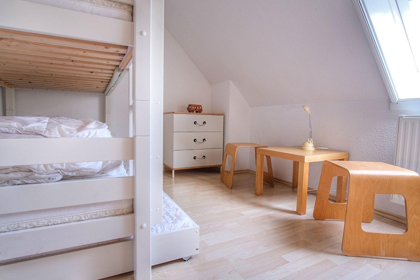 1 SZ mit Doppelbett, 1 SZ mit Etagenbett + Auszugbett , Balkon, PKW-Stellplatz,