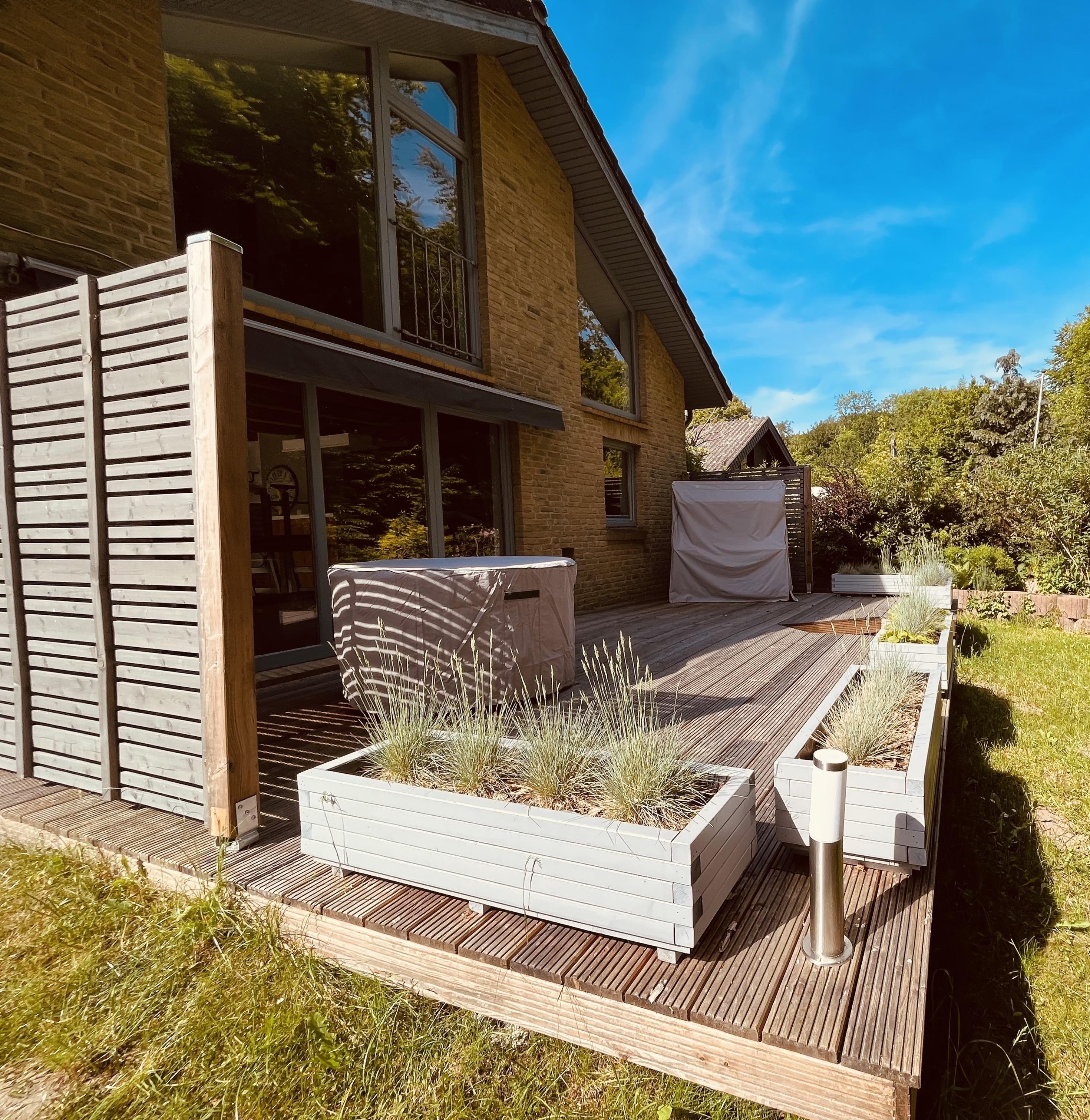 Das Objekt liegt auf einem ca. 300qm großen Grundstück mit 2 Stellplätzen, Garten und Terrasse. Im Haus befinden sich 2 Etagen. Im unteren Bereich befindet sich die Küche, sowie 1 großzügig offen gestaltetes Esszimmer, angegliedert MIT KAMIN. Terrassenbereich 2023 neu errichtet und gestaltet( Strandkorb ).