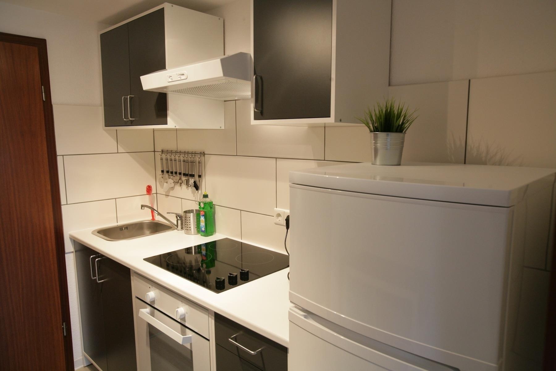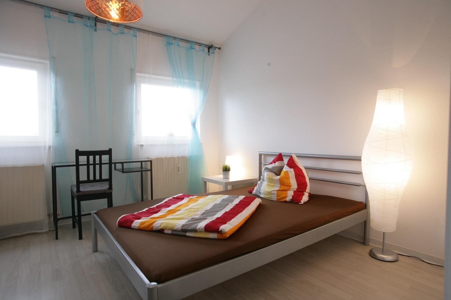 - quiet, cental and very good traffic connection, in front of the house - shops of the everyday life, like supermarket, butcher, baker, drugstore, banks, are to be reached etc. - the city bus and train stop in front of the house. From here they are at approx. 15 minutes directly in the city center - Apartments are complete furnished. We have a bed 140x200, TV, table, chairs, couch, cabinet, own kitchen, own bathroom with shower. Washing machines and dryers are in the house. - free parking infront of the house - All apartments with own Wifi-Internet -