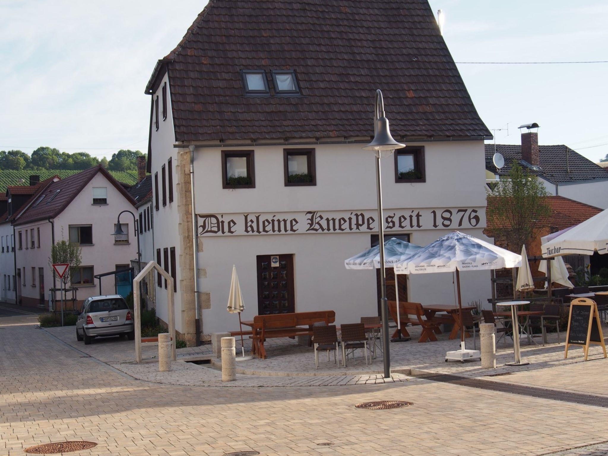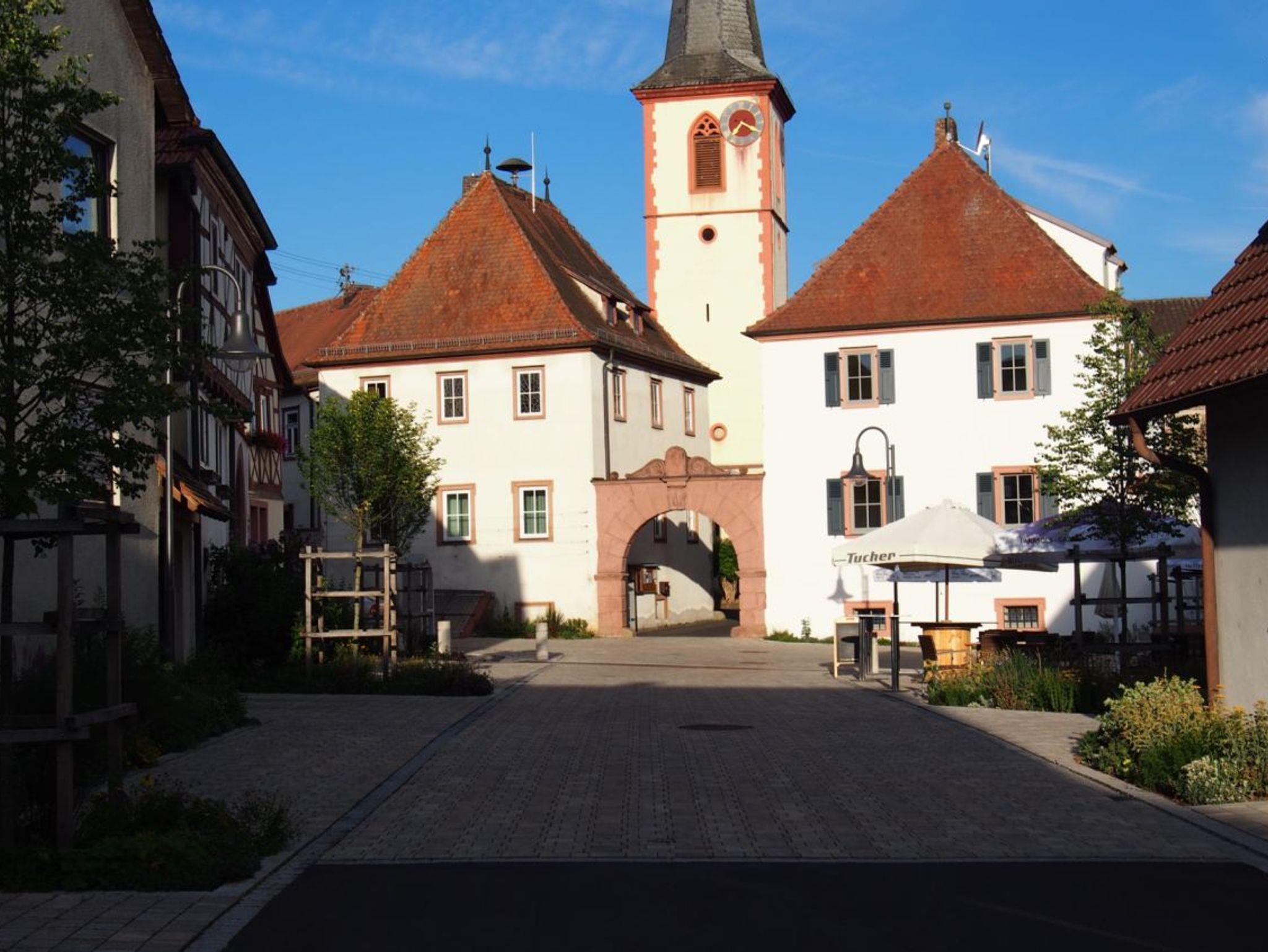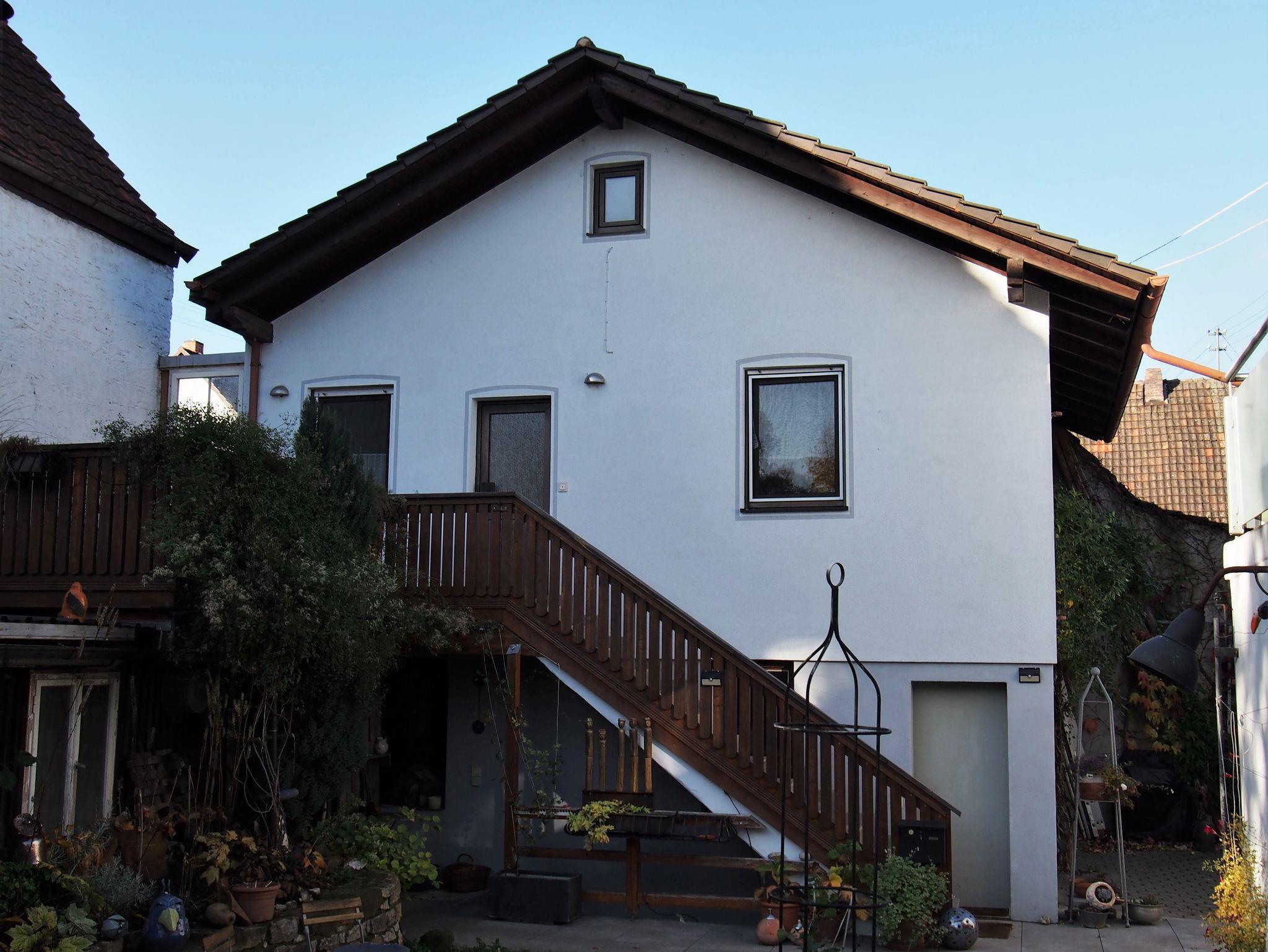 Unsere renovierte Ferienwohnung liegt in einer ruhigen Seitenstraße des altfränkischen Weindorfes. Die Wohnung befindet sich in einem separaten Nebengebäude mit Blick auf Kirche und Weinberge.