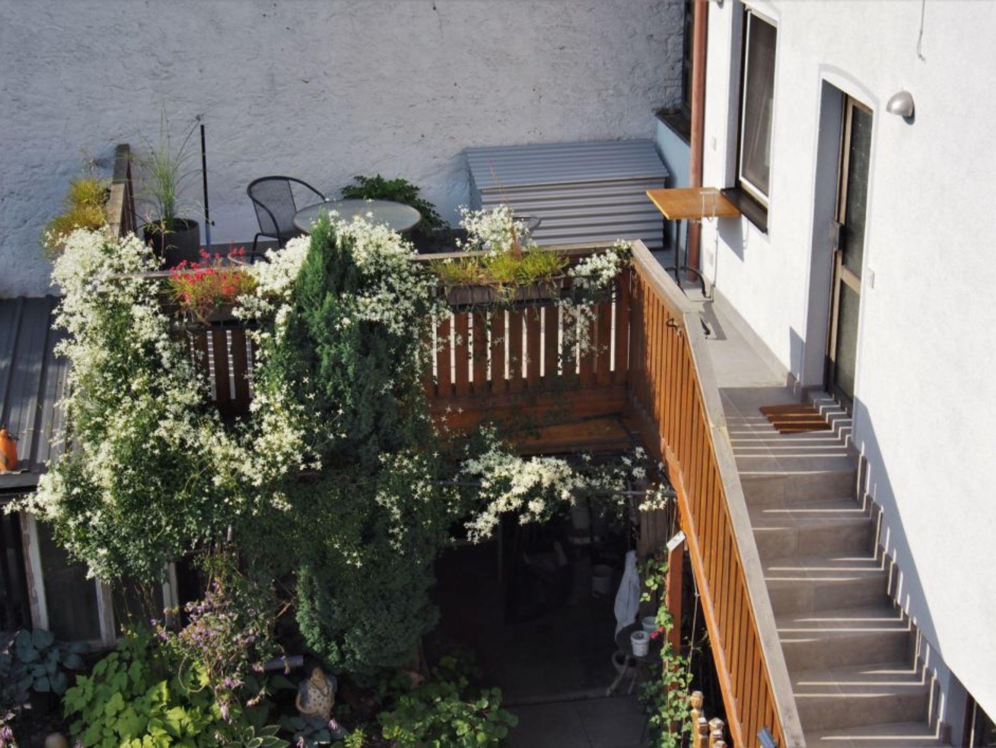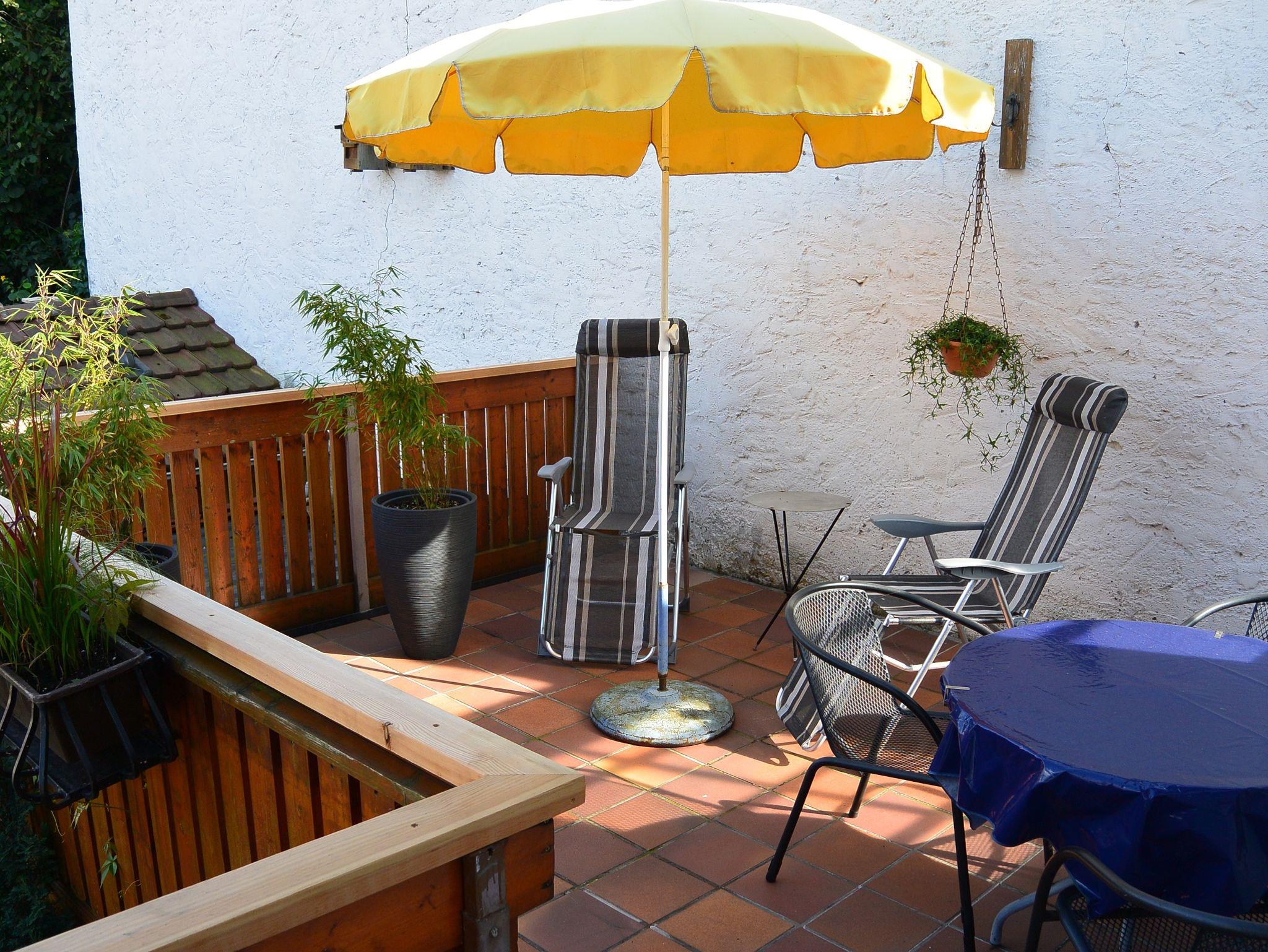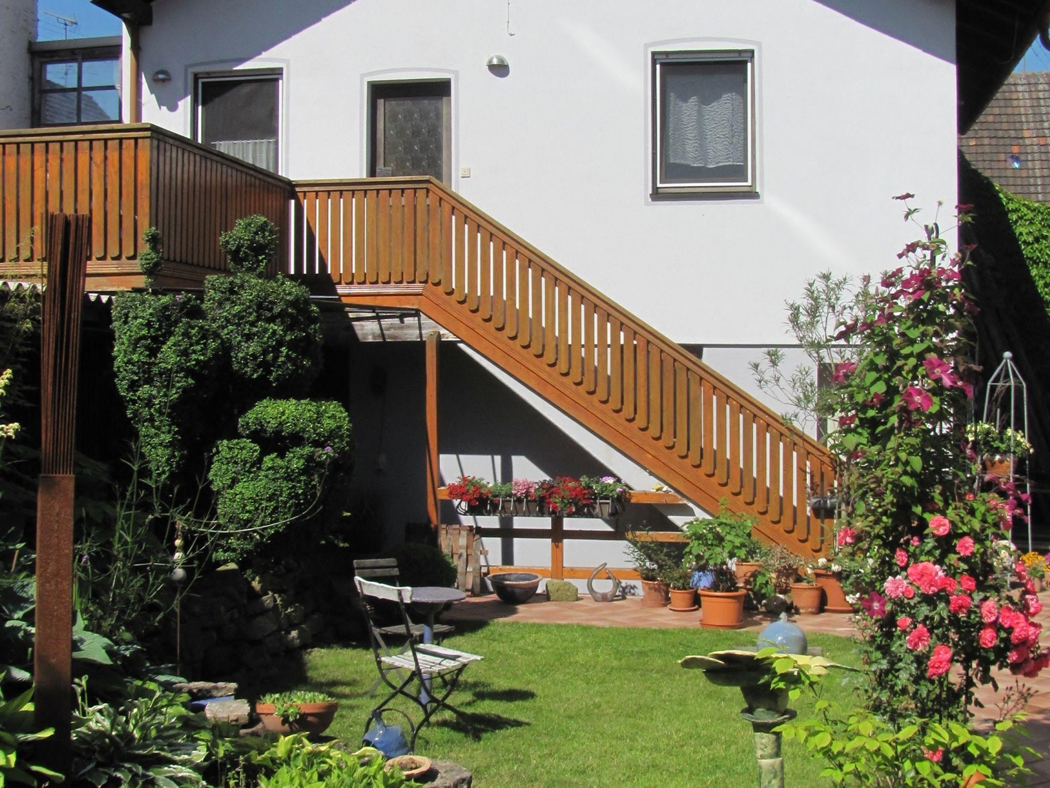 Vor der Wohnung befindet sich eine Terrasse, die zum Entspannen einlädt und von der aus Sie unseren Garten im Blick haben.