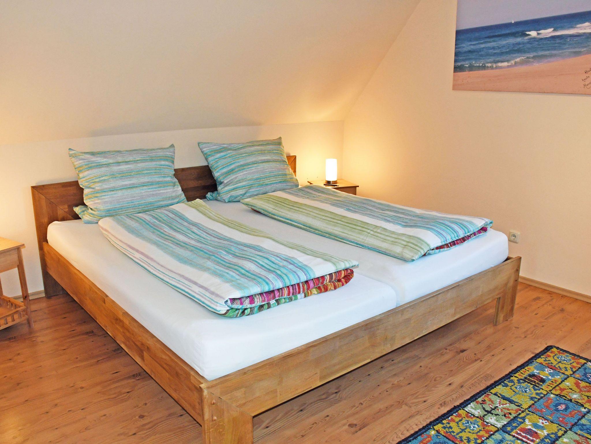 Im ersten Schlafzimmer steht ein bequemes Doppelbett mit Nachttischen und Leselampen sowie ein großer Kleiderschrank. Das zweite Schafzimmer verfügt über ein Schlafsofa. Bei Ihrer Anreise liegen frische Handtücher bereit und die Betten sind selbstverständlich bereits mit Bettwäsche bezogen. Auf Wunsch können ein Kinderreisebett und Hochstuhl bereitgestellt werden.