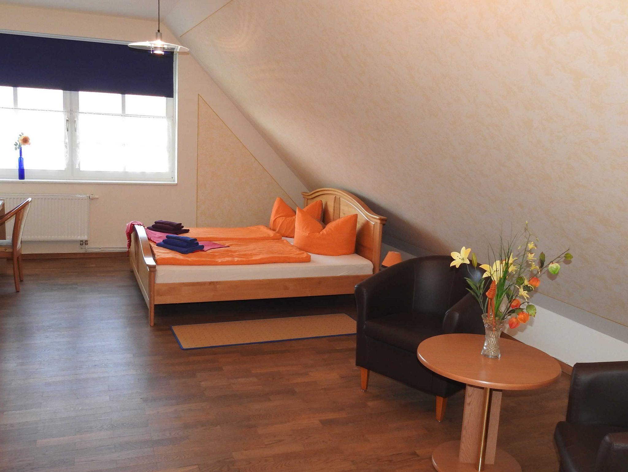 Großes Doppelzimmer für 2 Personen mit Bad (Dusche). Modern eingerichtet, Sat-TV und W-LAN Nutzung. Gern leihen wir Ihnen Bügelutensilien.