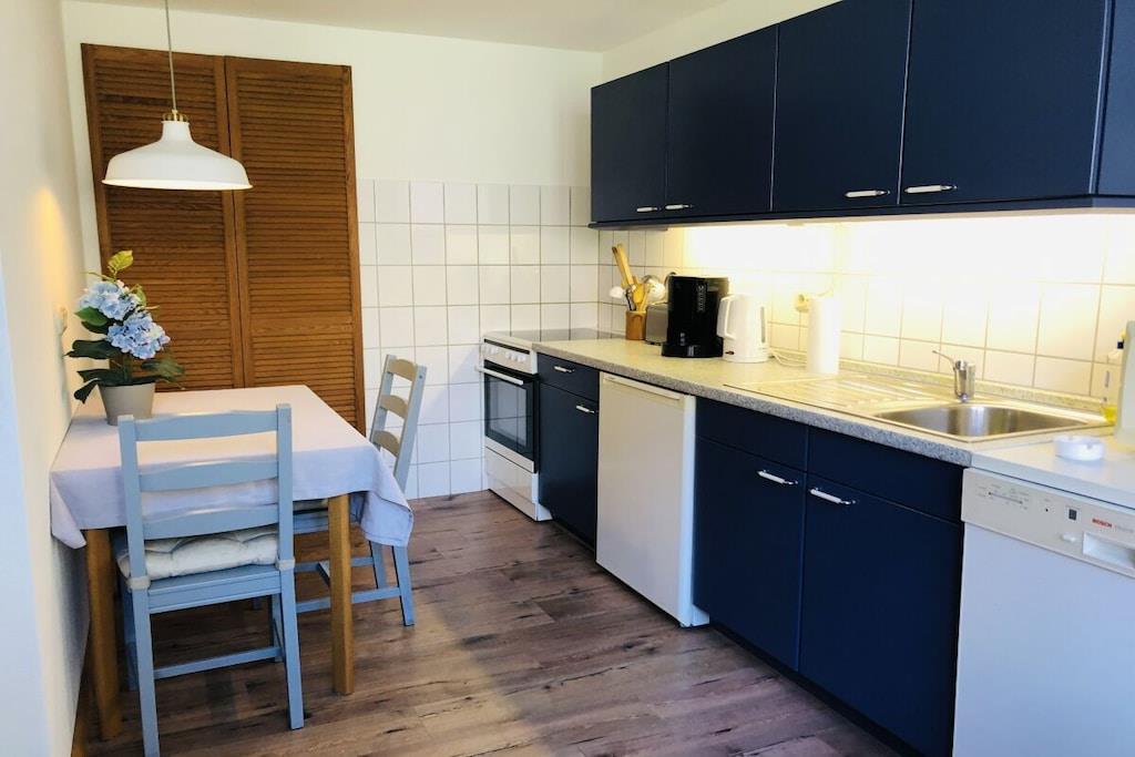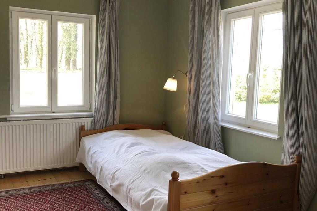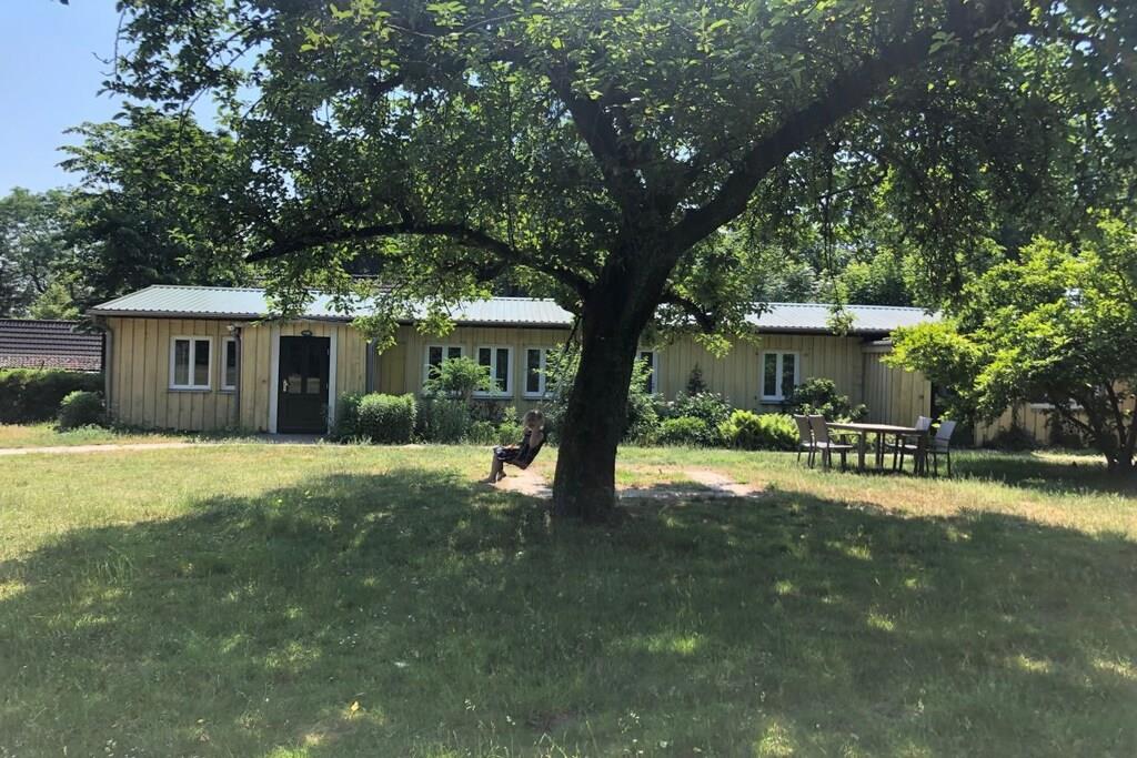Vores feriehus (100 kvm) er særligt velegnet til børnefamilier. En stor, lukket have indbyder til at spille fodbold og løbe rundt og tilbyder masser af plads til børn og kæledyr. Den umiddelbare nærhed til et svømmeområde (100 m) ved Ruppin-søen er især tiltalende om sommeren, mens den store græsplæne i haven er perfekt til uforstyrret afslapning. Feriehuset er delvist møbleret med antikke familiemøbler. Huset har en stue/spisestue, et fuldt udstyret køkken, to soveværelser (hver med tre senge) og et badeværelse med bruser. Huset har plads til op til seks personer.